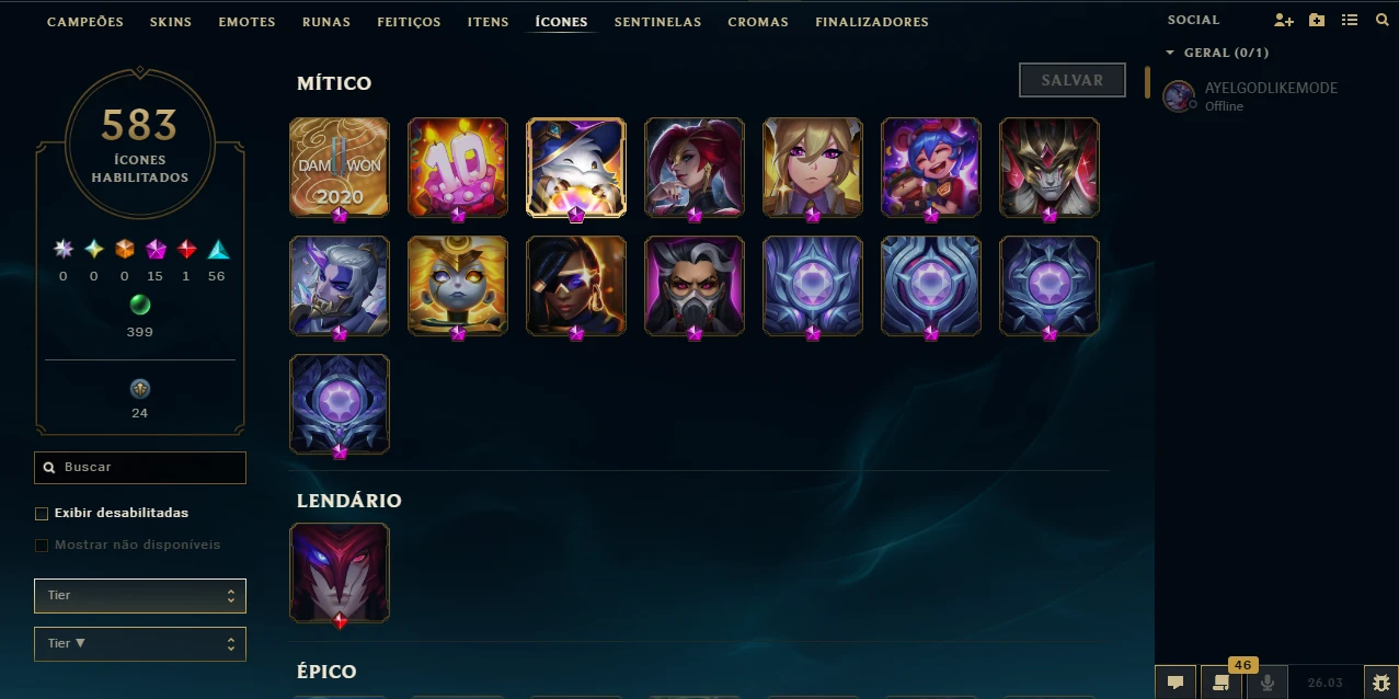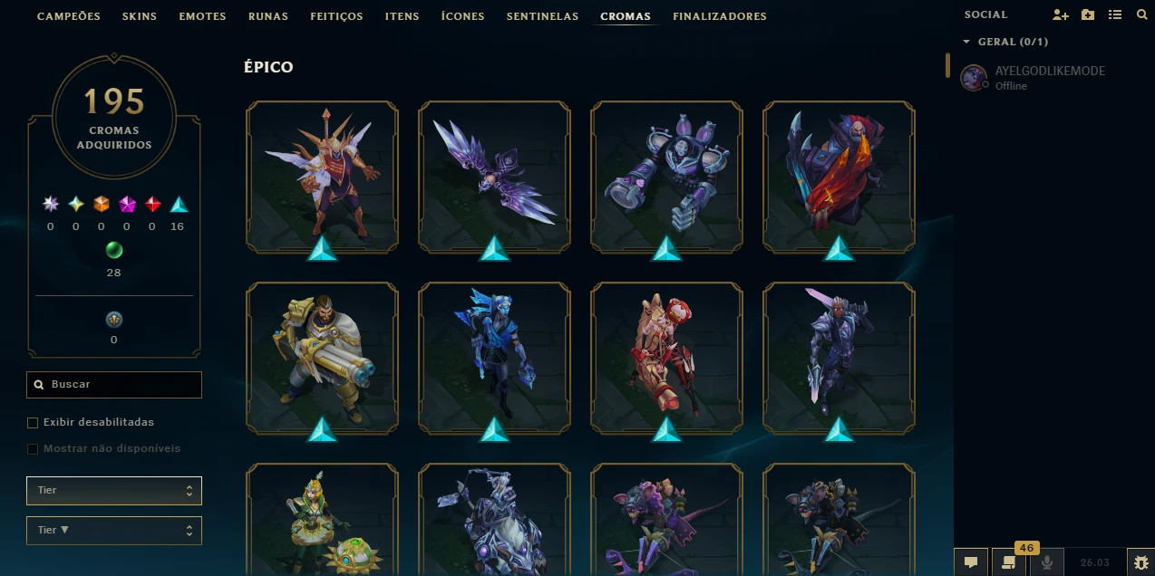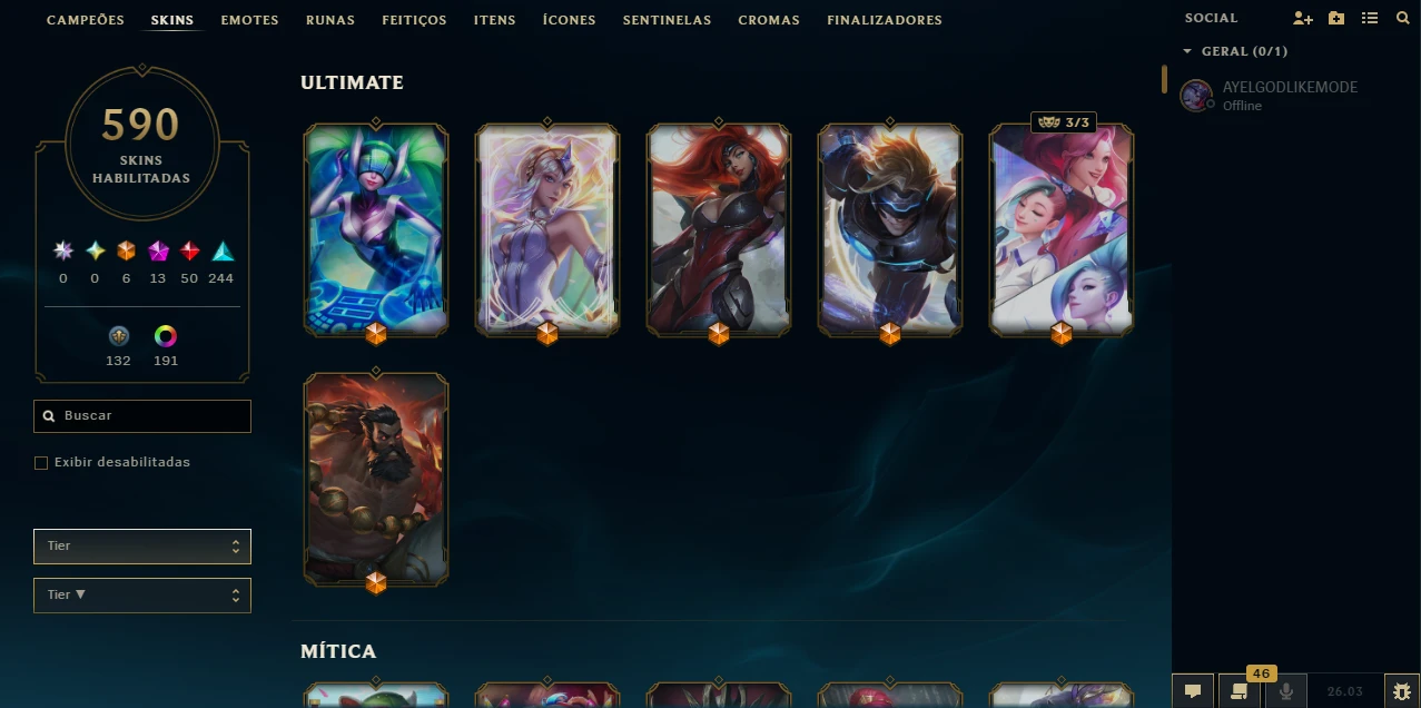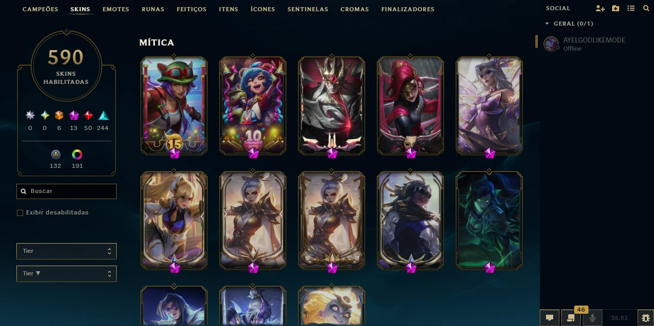 Conta de LoL + Valorant - 590 skins no lol e muitas no valor