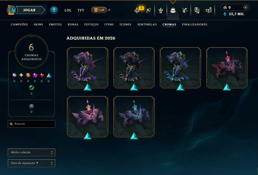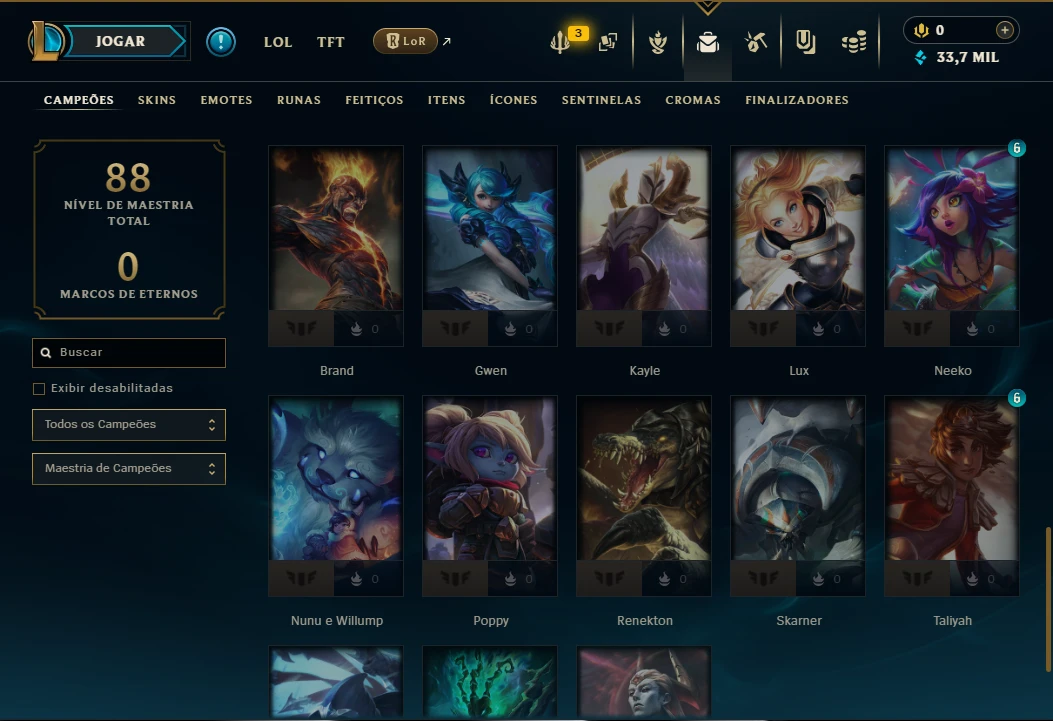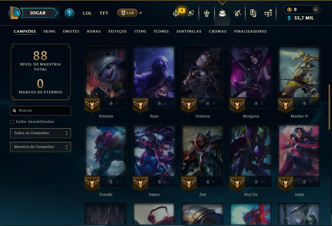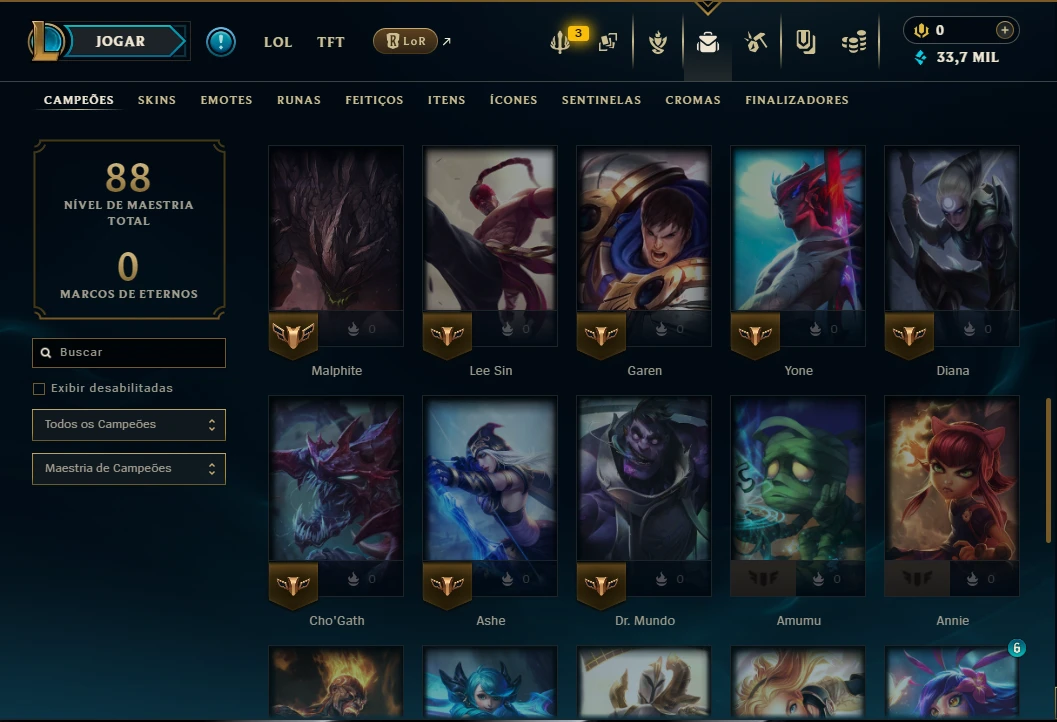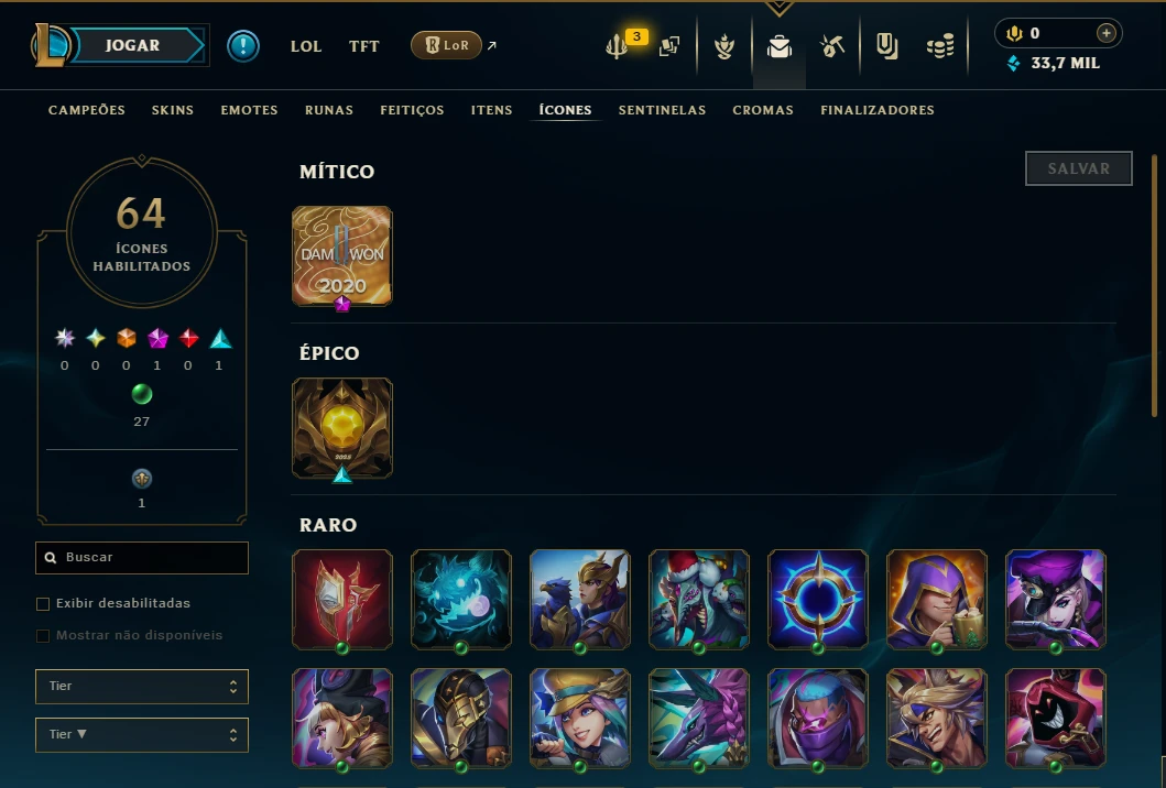 Conta Diamante 1 com 32 PDL, 45 Champs e 7 Skins, 33k de EA, 6 Cromas, 64 Ícones, 17 Emotes, 3 Reembolsos e Honra 5.