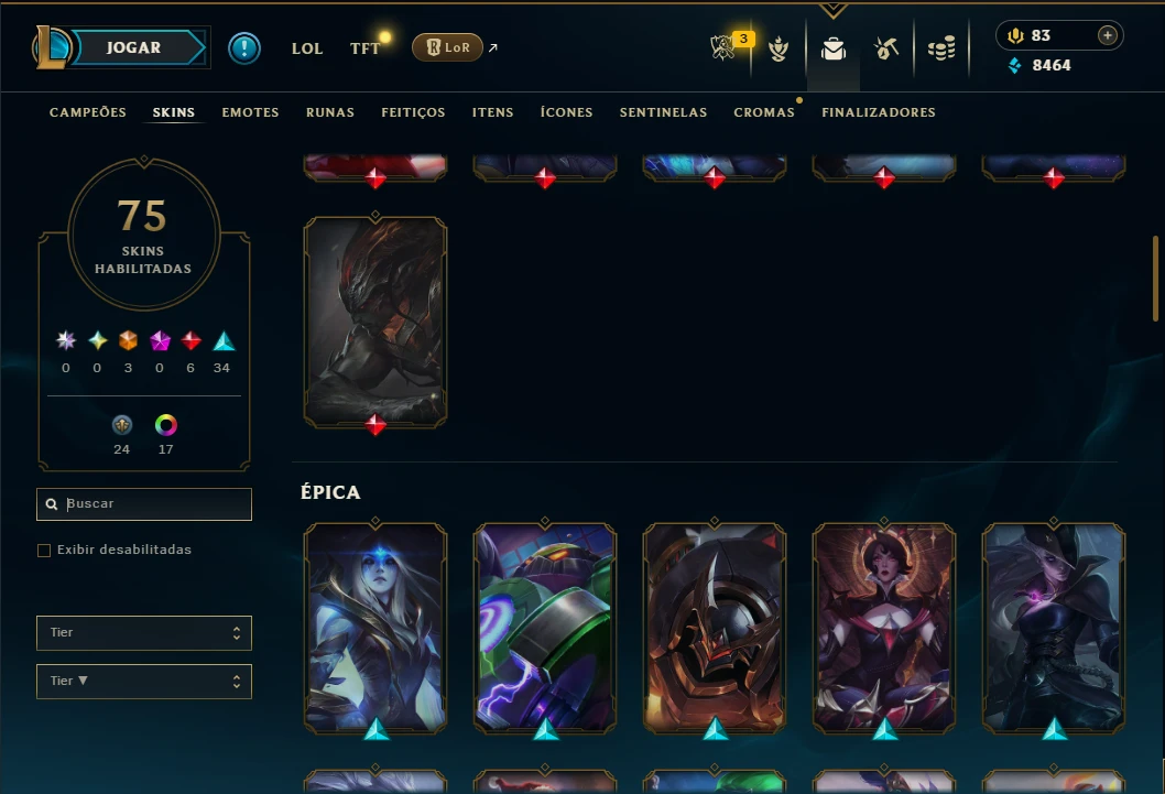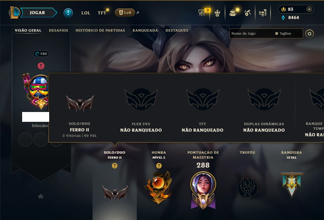 Ferro 2 com 65 Champs e 75 Skins +3 Ultimates - League of Legends LOL