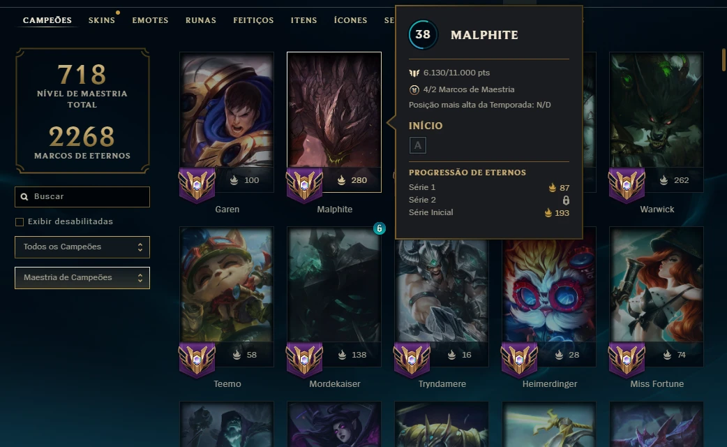 Informações sobre a conta LOL: