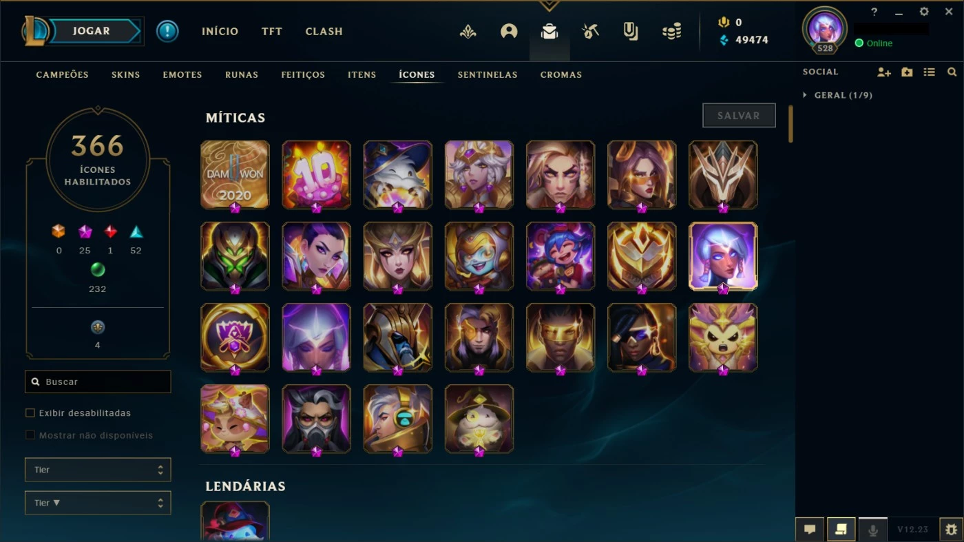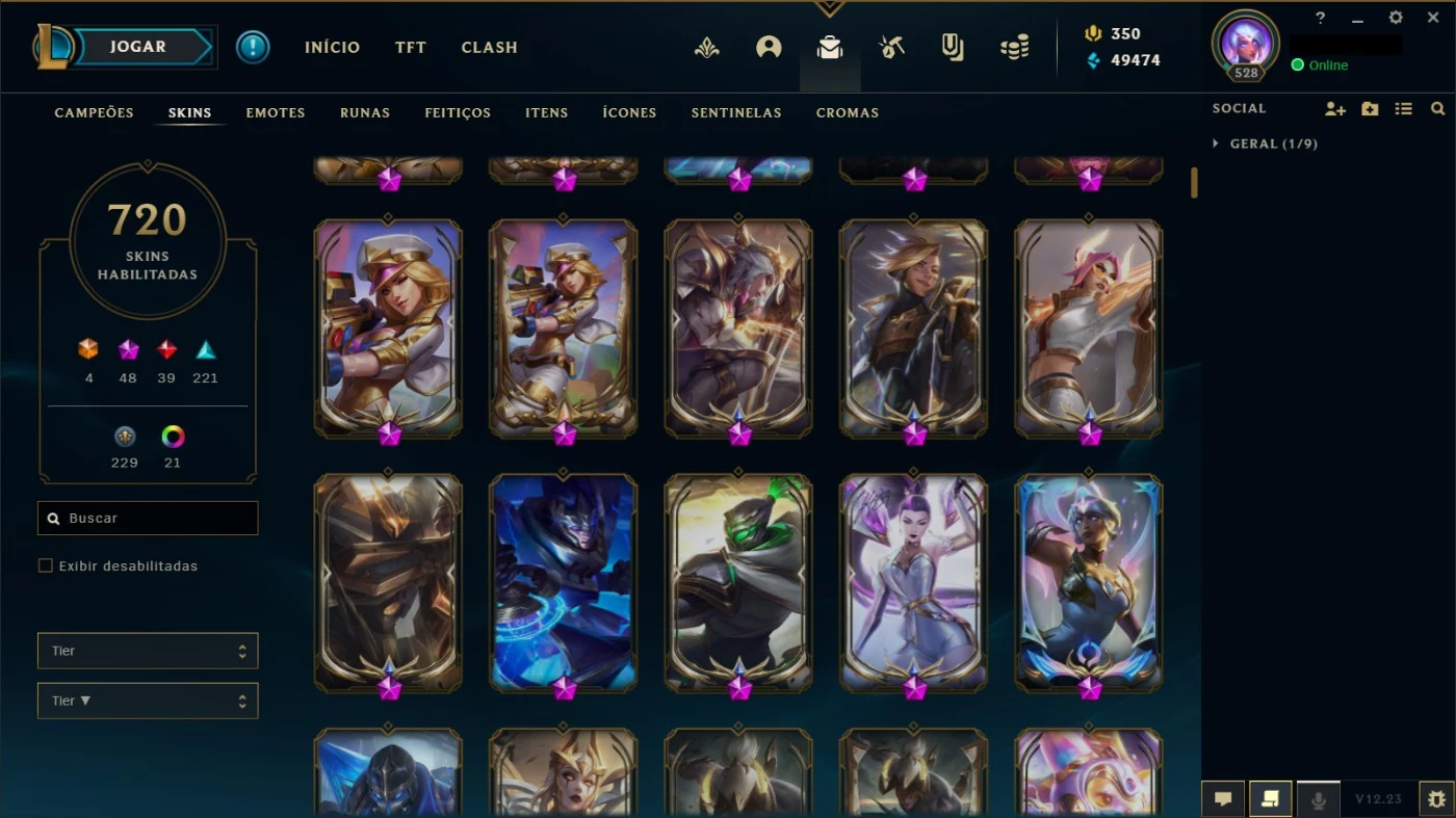 conta LoL full champ 720 skins plat 1 64% win rate - League of Legends