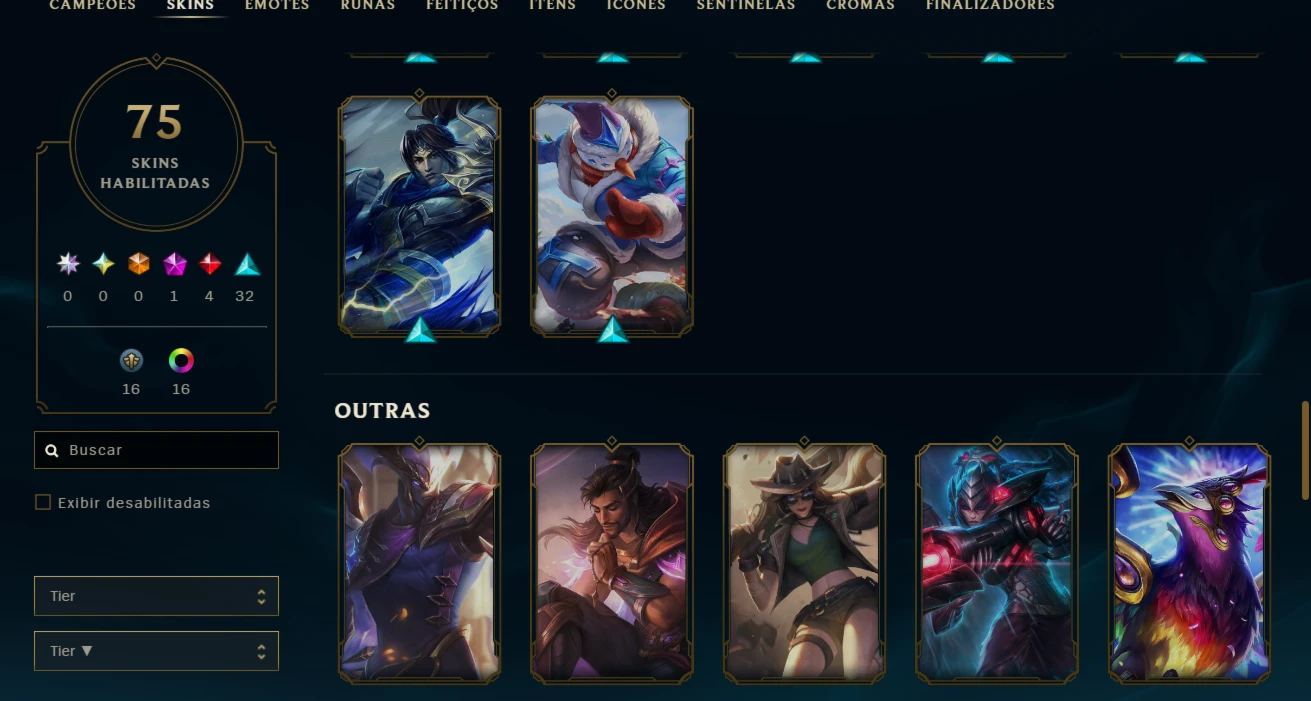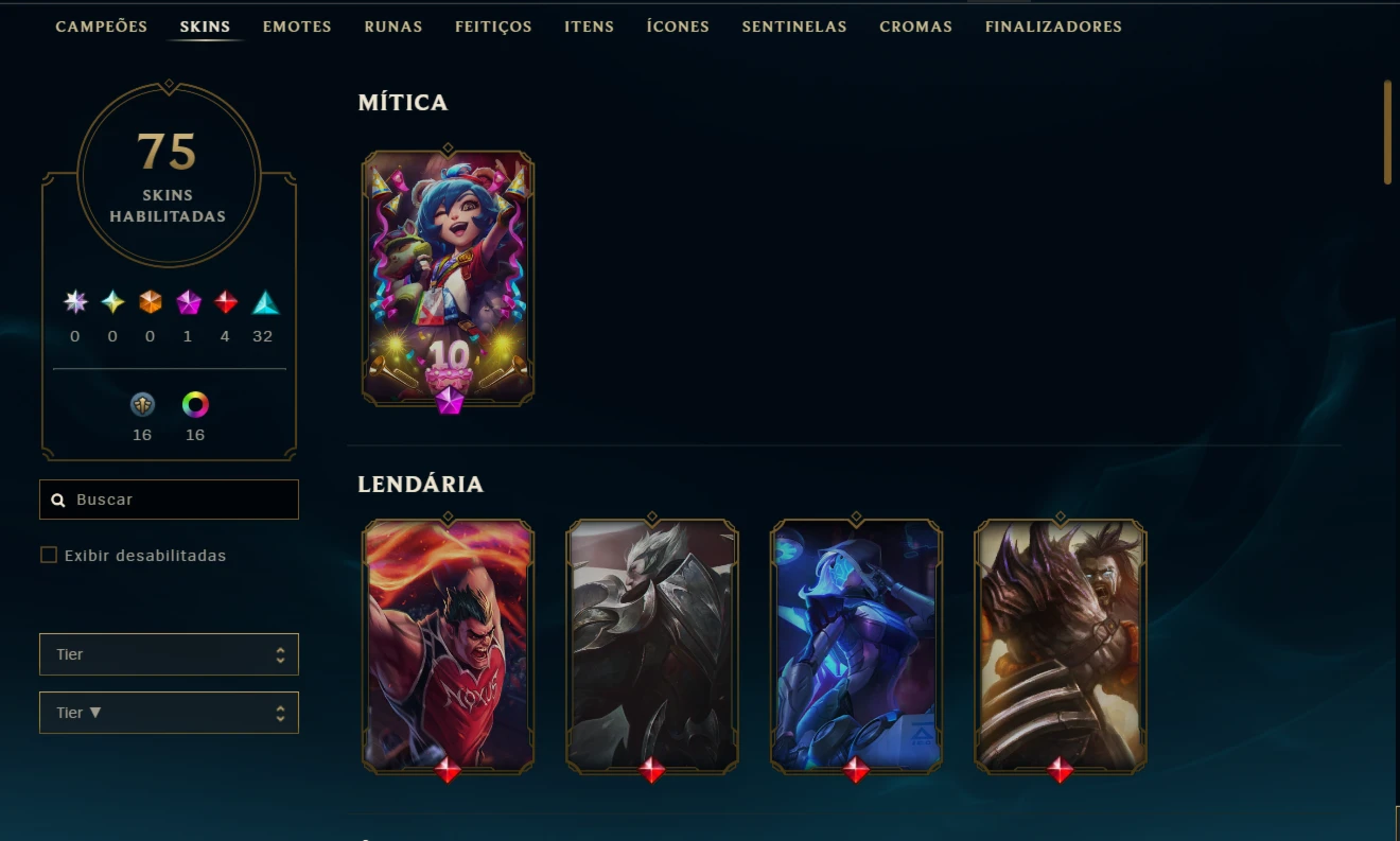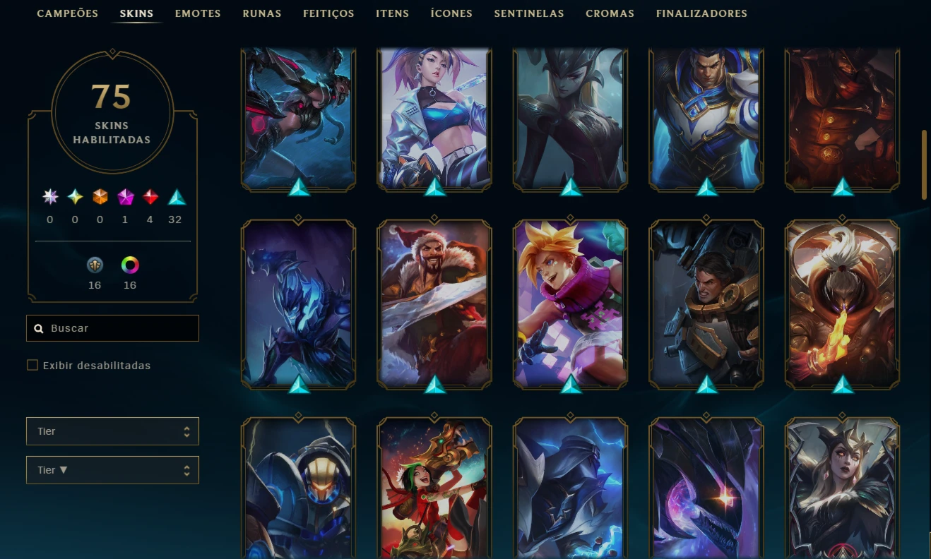 ✅PRINT DAS SKINS NO ANÚNCIO! ✅FULL ACESSO, TUDO TROCÁVEL ✅LEVEL: 147 ✅95 CAMPEÕES ✅75 SKINS ✅16 CROMAS ✅MMR BOM 🟥Telefone sem verificação. 🟥Nick não disponível para troca!
