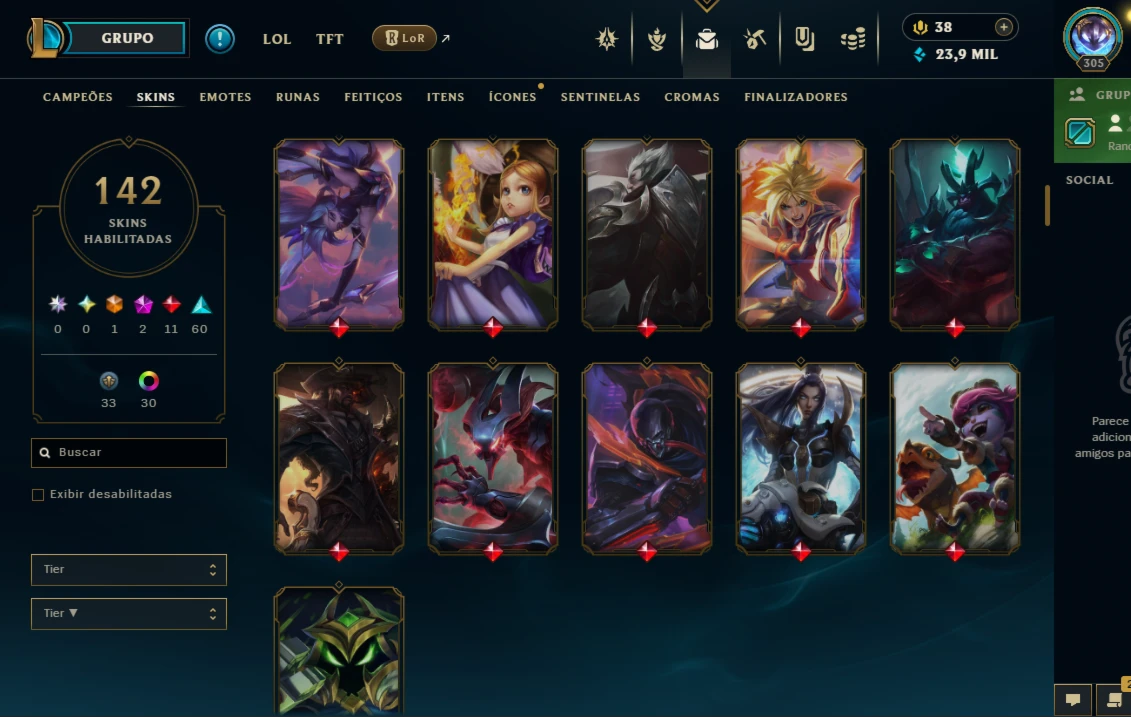 Conta lol mestre 142 skins FULL ACESSO FULL CHAMPS