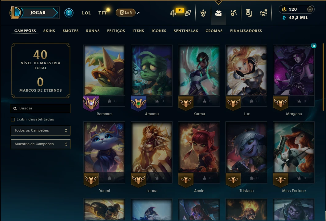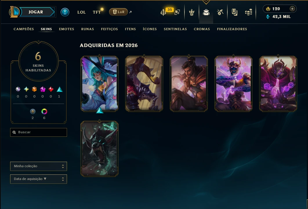 Mestre com 30 Champs e 6 Skins