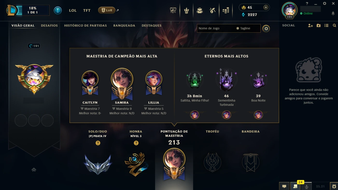 Nível 191, Prata Iv, 119 Champs E 36 Skins - League of Legends LOL