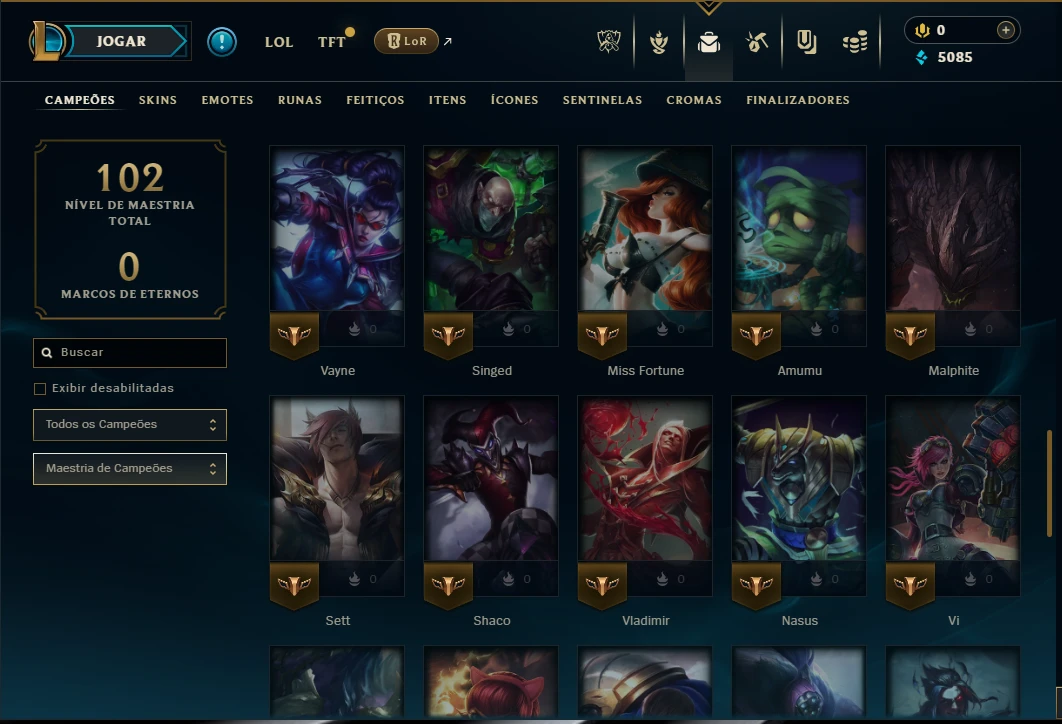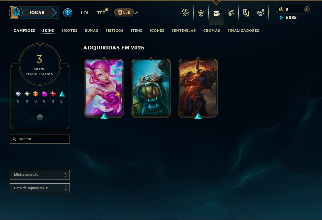 Ouro 2 com 60 Champs e 3 Skins - League of Legends LOL