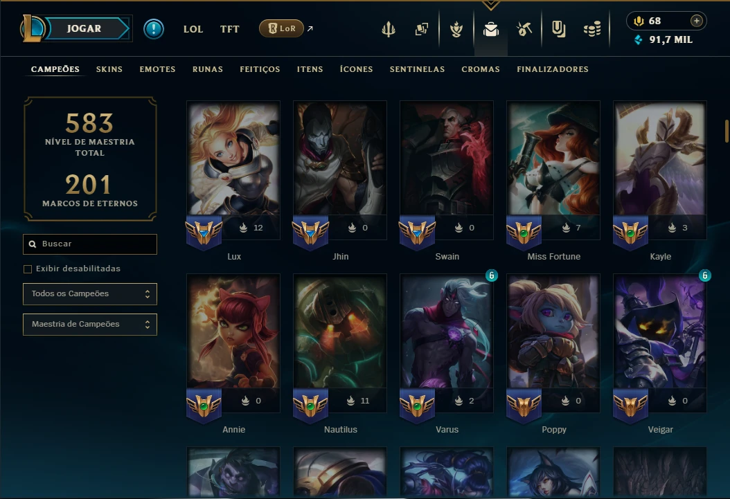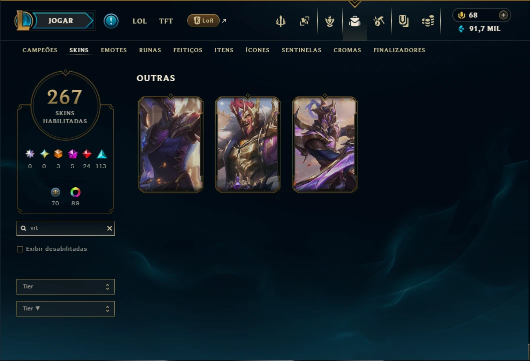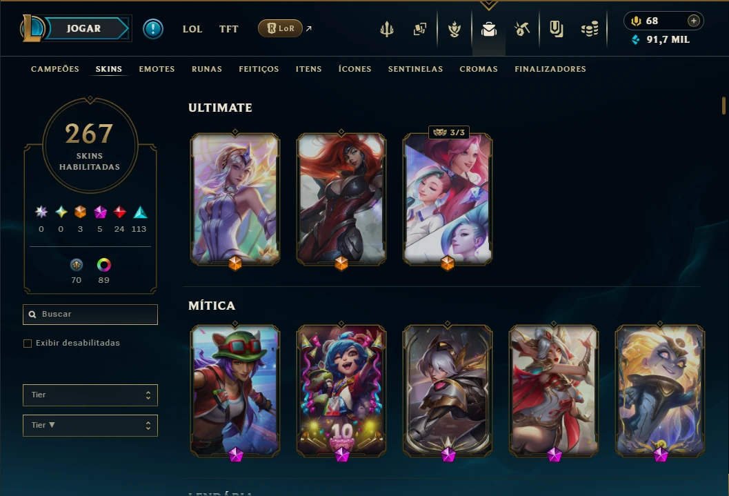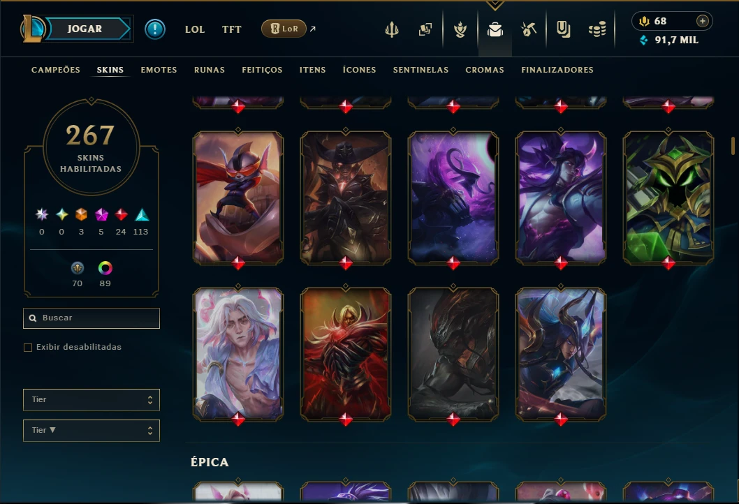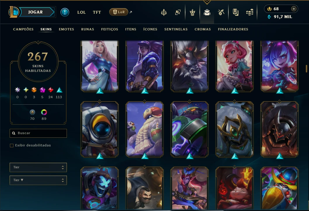 Mais de 5.000 vendas no site – Experiência e Confiança!Ouro 2 com TODOS os Champs e 267 Skins +3 Prestigios