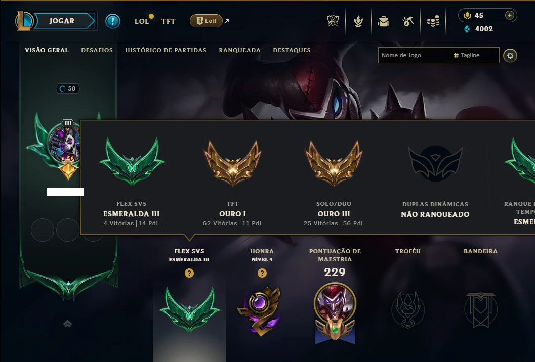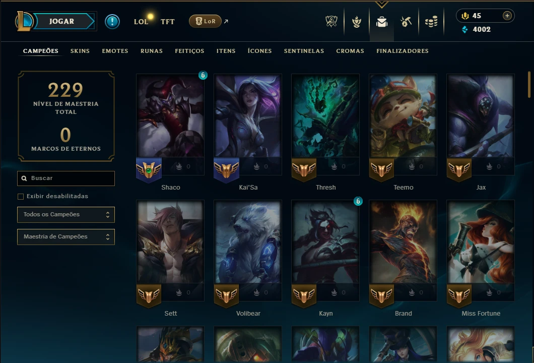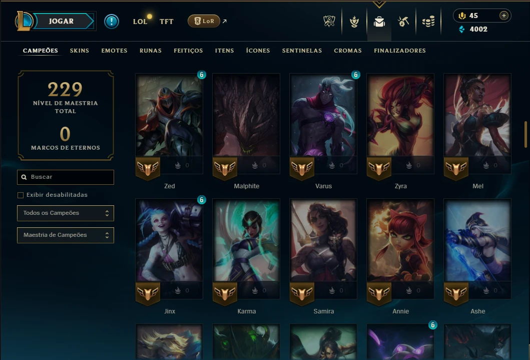 Ouro 3 com 115 Champs e 20 Skins - League of Legends LOL