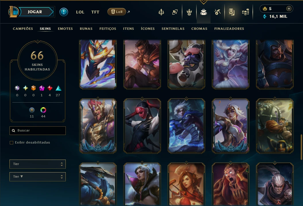 Ouro 3 com TODOS os Champs e 66 Skins - League of Legends LOL