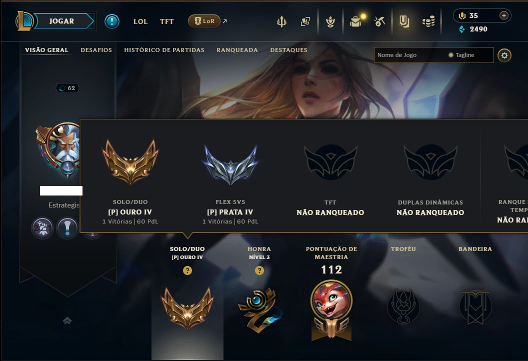 Ouro 4 com 70 Champs e 27 Skins - League of Legends LOL