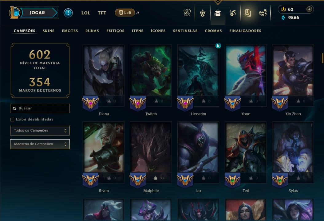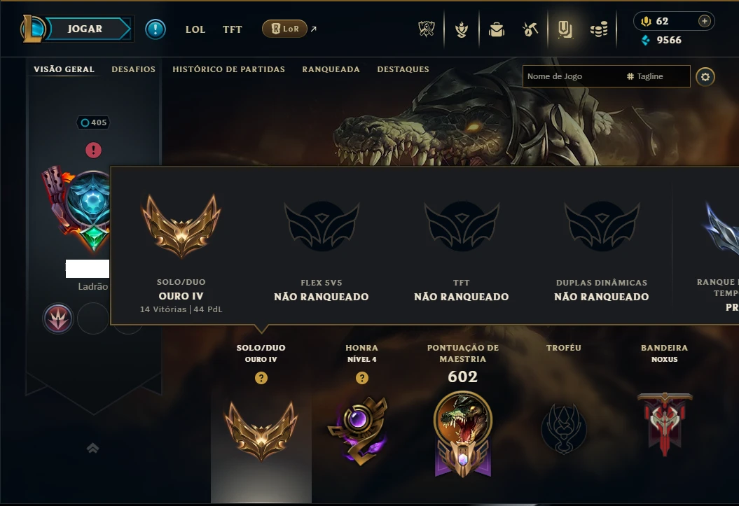 Ouro 4 com TODOS os Champs e 131 Skins ( JG / MID / TOP ) - League of Legends LOL