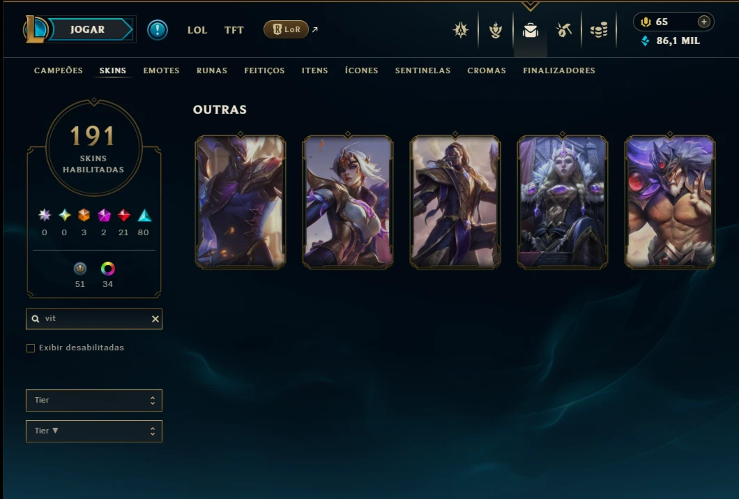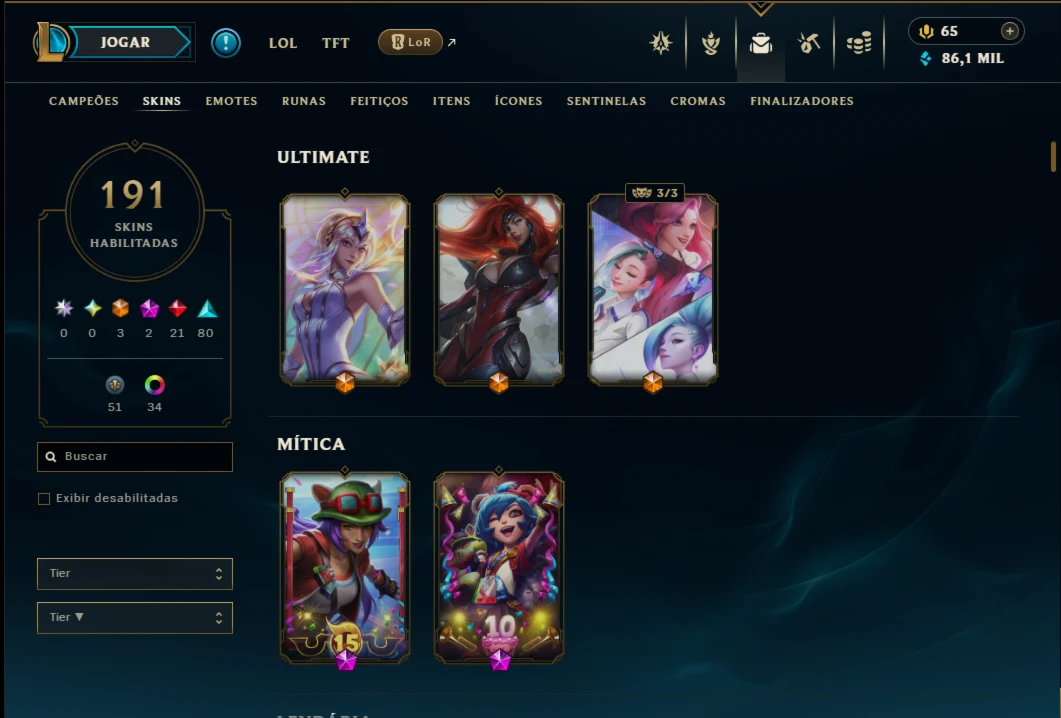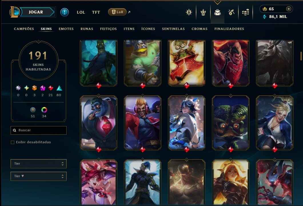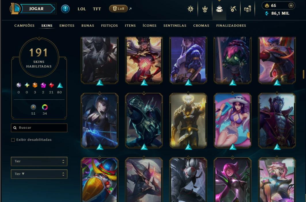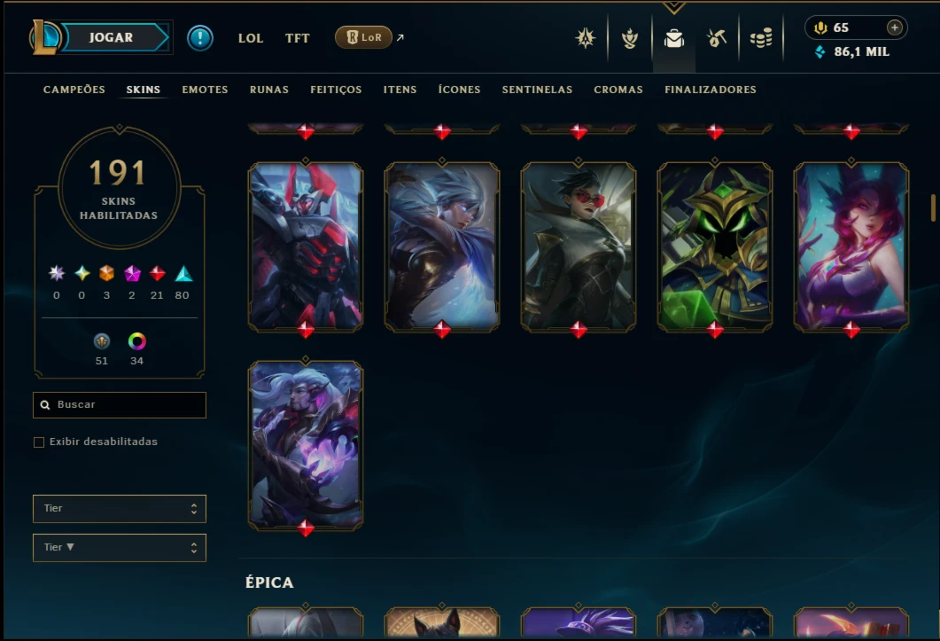 Ouro 4 com TODOS os Champs e 191 Skins ( ADC / SUP / MID )