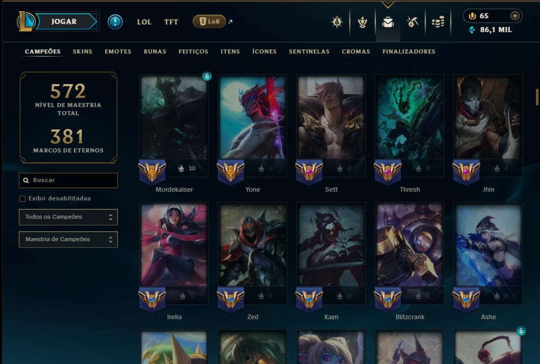 Ouro 4 com TODOS os Champs e 191 Skins ( ADC / SUP / MID ) - League of Legends LOL