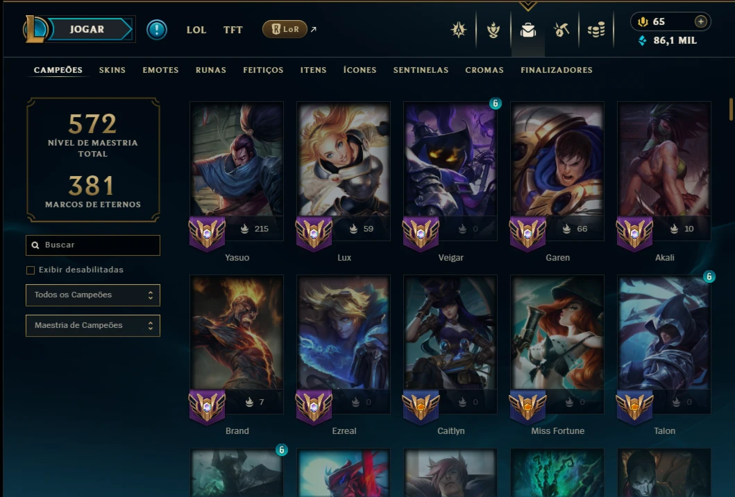 ( ADC / SUP / MID ) - ( Nivel 493 ) - Conta Ouro 4 com TODOS os Champs, Maestria 35 de Yasuo, 15 de Lux, 12 de Veigar, 11 Garen, 20 Maestrias acima de 7, 191 Skins, 3 Ultimates, 2 Miticas, 5 Vitoriosas, 86k de EA, 34 Cromas, 340 Ícones, 236 Emotes, 3 Reembolsos e Honra 5.