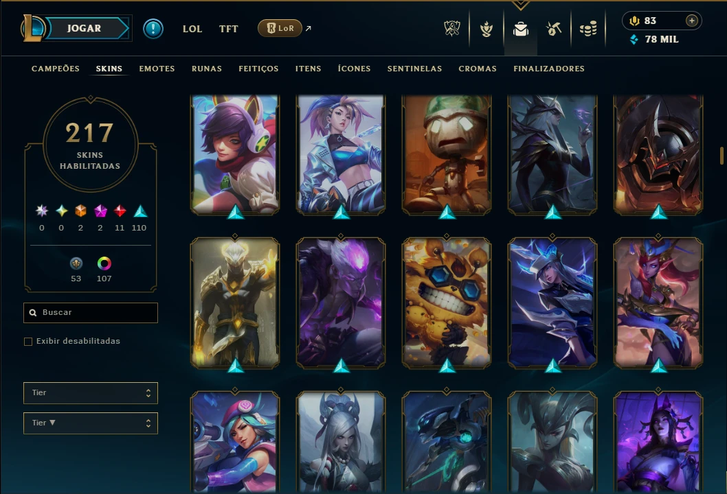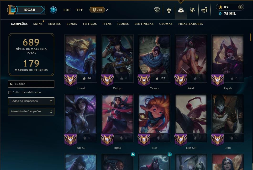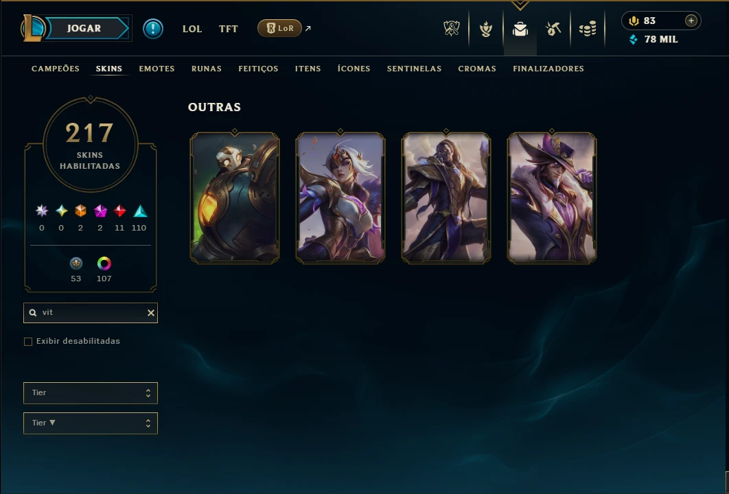 Ouro 4 com TODOS os Champs e 217 Skins ( ADC / MID )