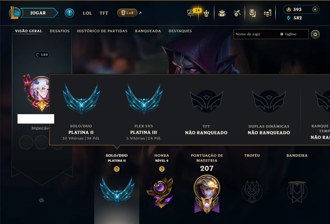 ( ADC / MID ) - Conta Platina 2 com 85 Champs, Maestria 16 de Ezreal, 12 de Yasuo, 46 Skins, 2 Ultimates, 5 Vitoriosas, 9 Cromas, 393 RP, 104 Ícones, 64 Emotes, 7 Fragmentos de skins, 15 Essencias Miticas, 3 Reembolsos e Honra 4.