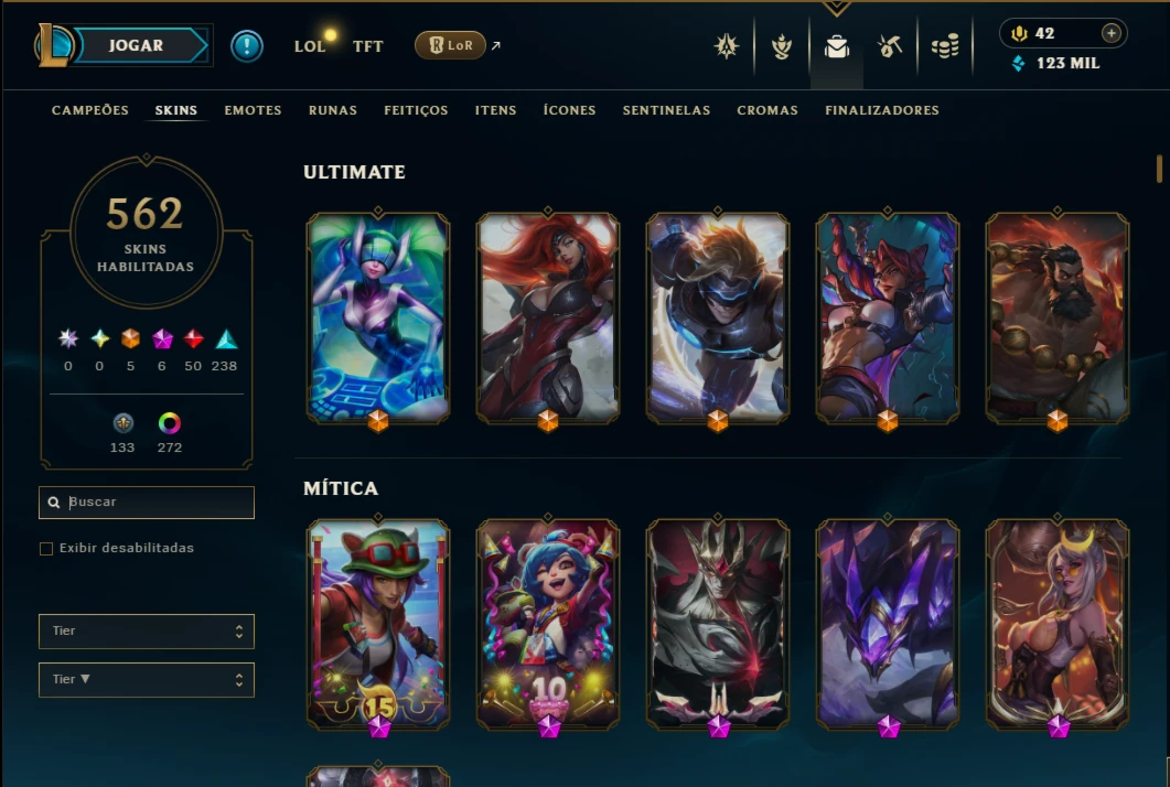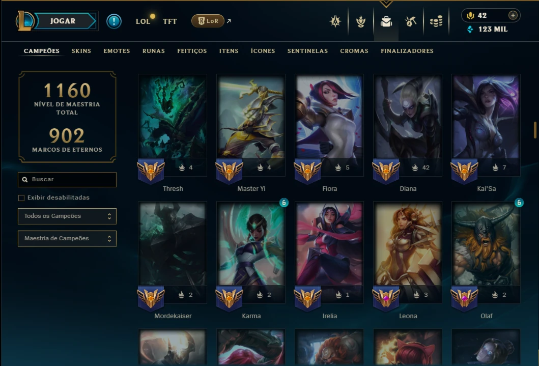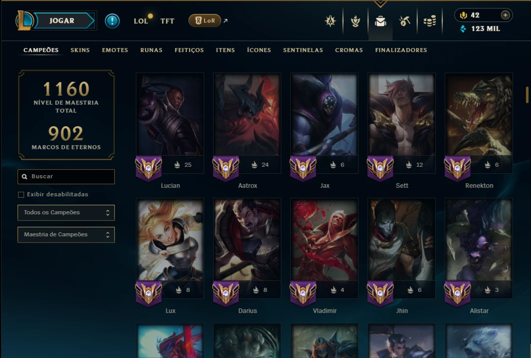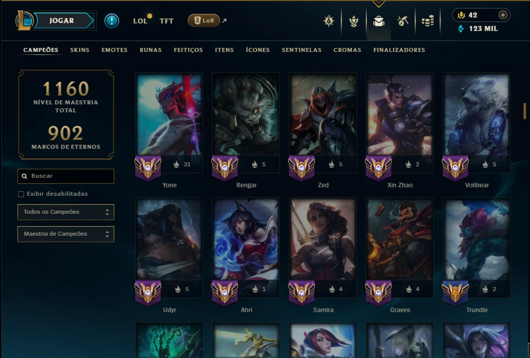 Platina 4 com TODOS os Champs e 562 Skins +4 Prestigios