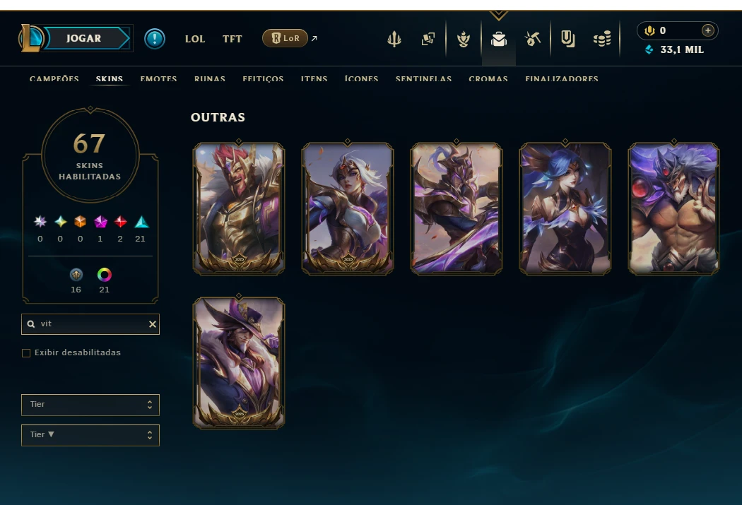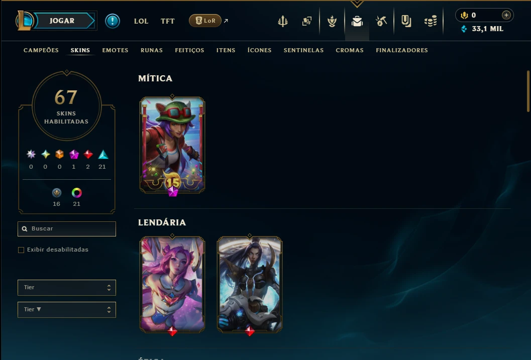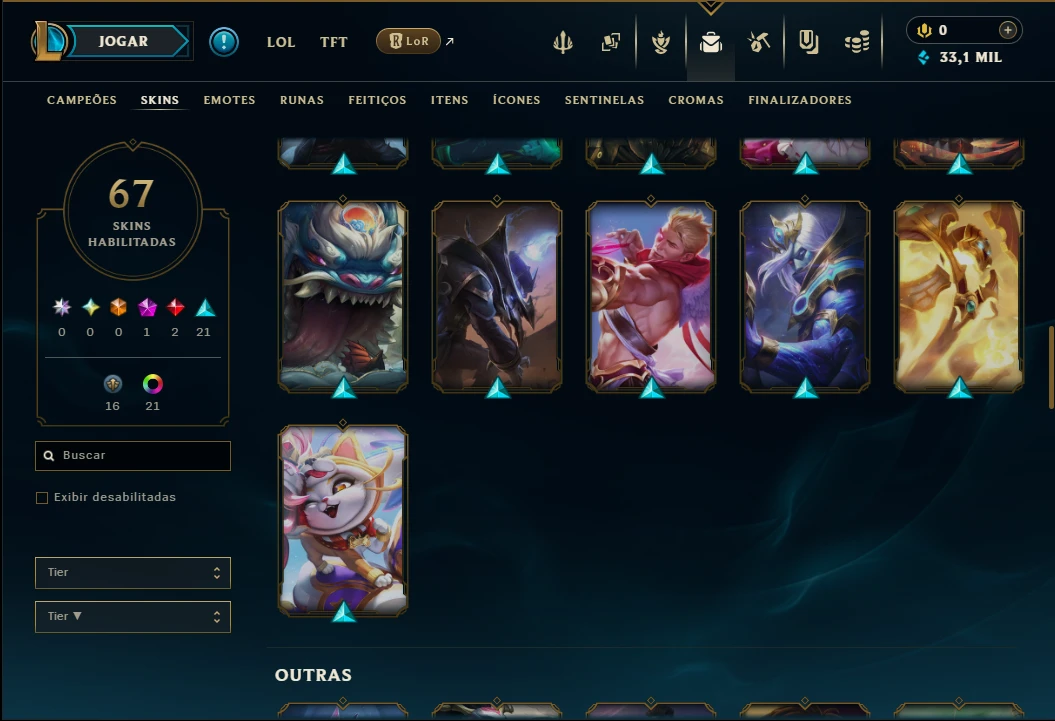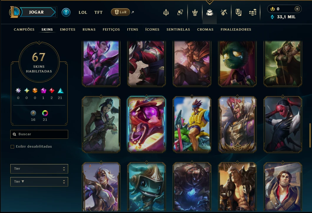 Platina 4 com TODOS os Champs e 67 Skins ( ADC / SUP )