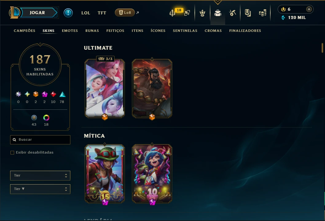 Prata 1 com TODOS os Champs e 187 Skins ( ADC / MID / JG )
