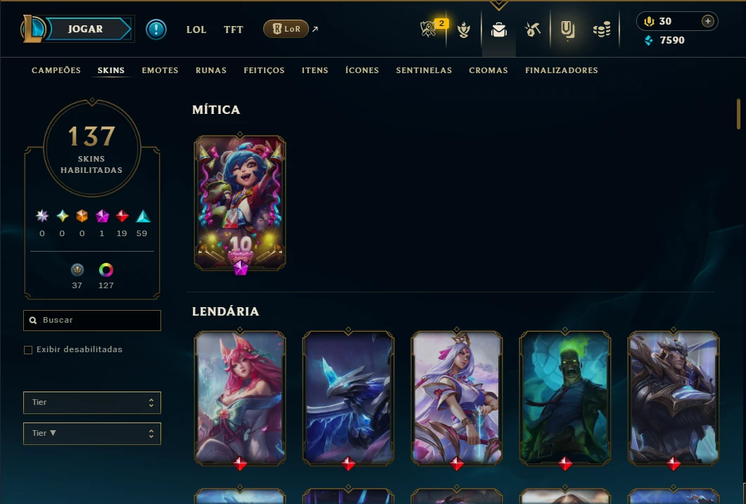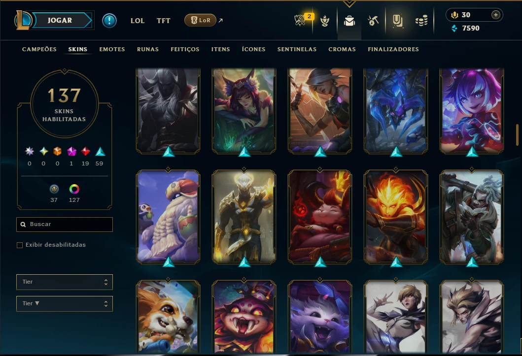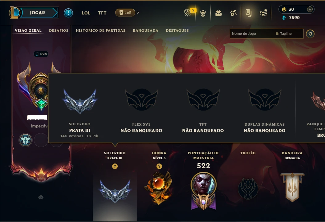 Prata 3 com 100 Champs e 137 Skins ( MID / SUP / TOP ) - League of Legends LOL