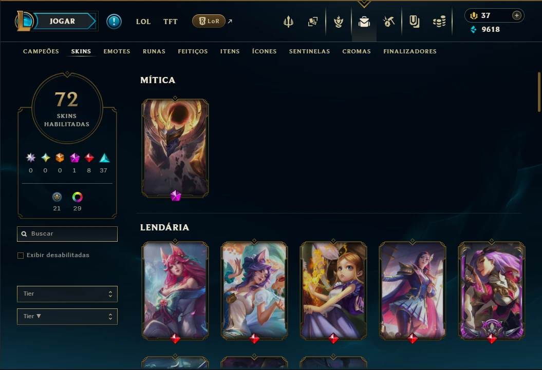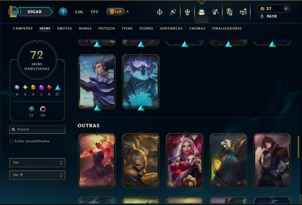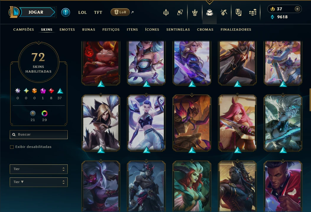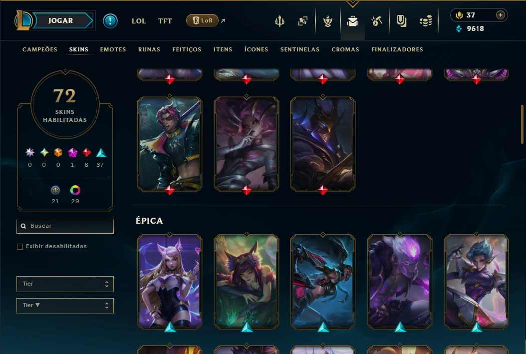 ( MID / JG / ADC ) - Conta Prata 4 com 90 Champs, Maestria 38 de Katarina, 17 de Yasuo, 10 de Akali, 72 Skins, 1 Prestigio do Malphite, 29 Cromas, 194 Ícones, 109 Emotes, 2 Fragmentos de skins, 16 de Campeão, 10 Essencias Miticas, 1 Reembolso e Honra 4.