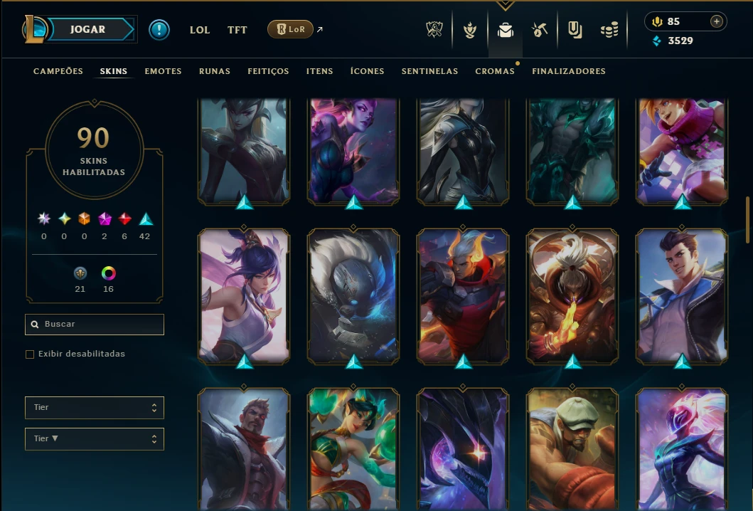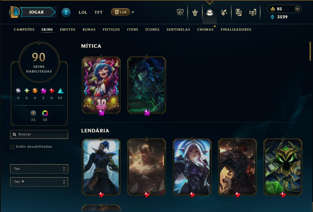 Conta Prata 4 com mais de 600 Jogos perfeita para smurfar com TODOS os Champs, Maestria 17 de Yasuo, 17 de Lucian, 16 de Zed, 12 de Veigar, 14 Maestrias acima de 7, 90 Skins, 2 Miticas, 2 Vitoriosas, 17 Cromas, 196 Ícones, 110 Emotes, 30 Essencias Miticas, 1 Reembolso e Honra 4.