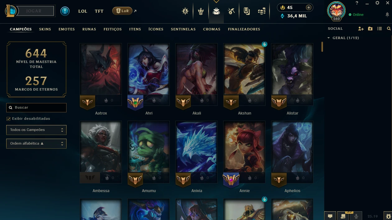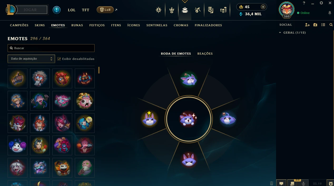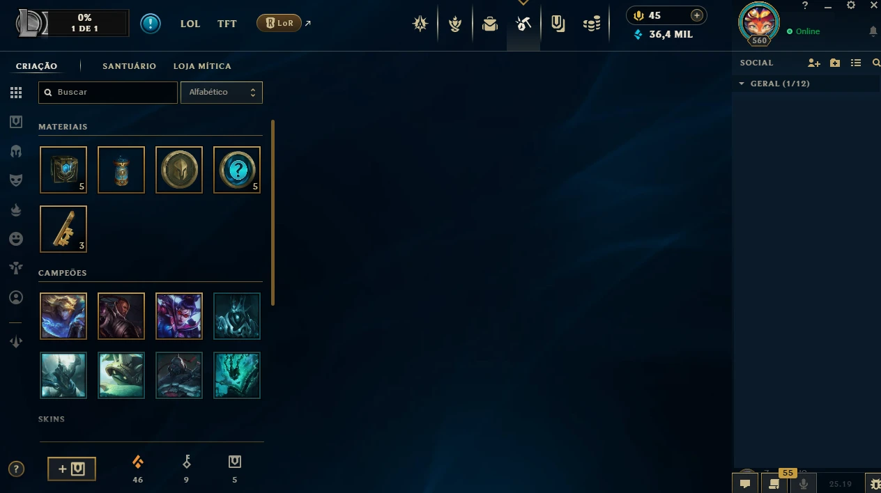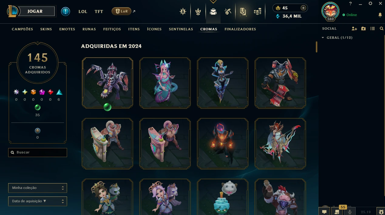 Ainda, a conta é vinculada ao Wild Rift que está nível 51, com algumas skins, incluindo Janna Previsão do Tempo.