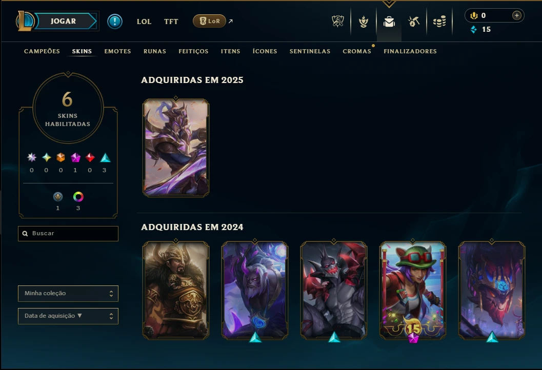 Unranked com 30 Champs e 6 Skins