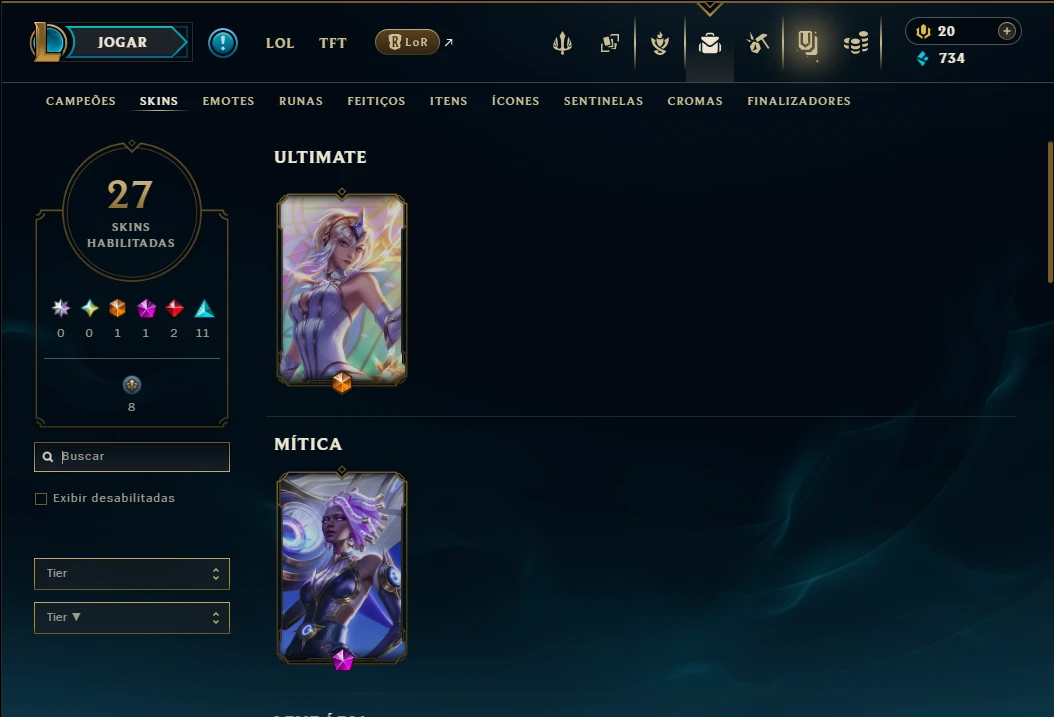 Unranked com 60 Champs e 27 Skins - League of Legends LOL