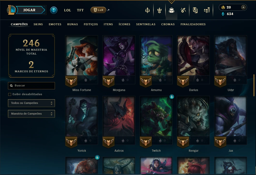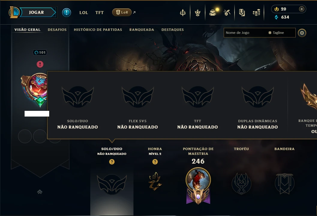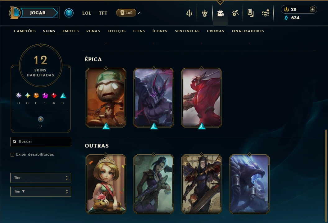 Unranked com 70 Champs e 12 Skins - League of Legends LOL
