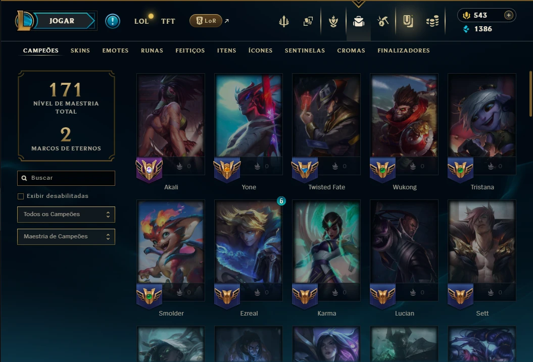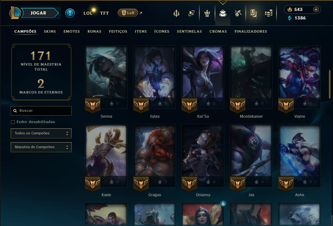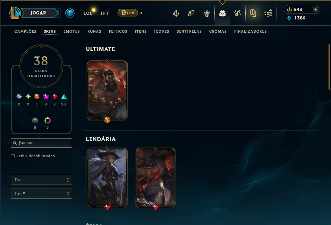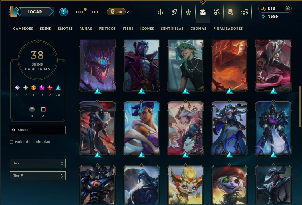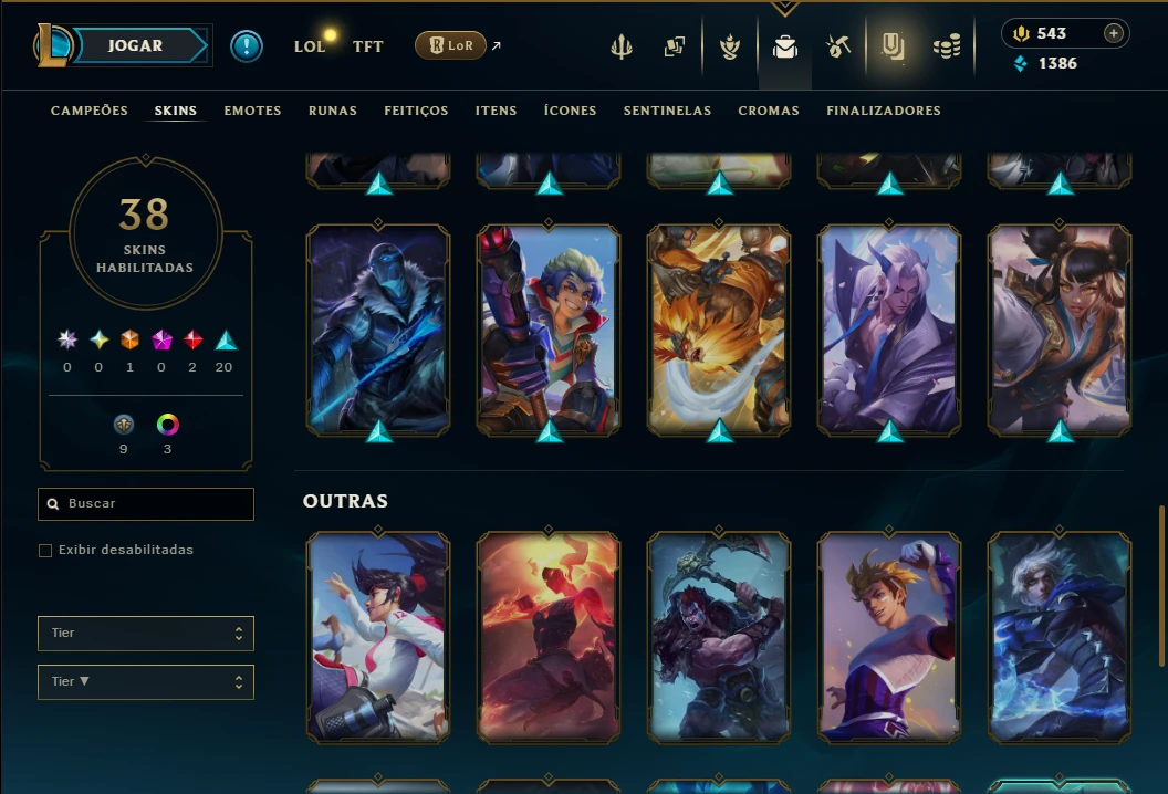 ( MID / ADC ) - Conta Unranked com 70 Champs e 38 Skins, 38 Skins, 3 Cromas, 92 Ícones, 54 Emotes, 4 Fragmentos de campeão, 1 de Skin, 15 Essencias Miticas, 2 Reembolsos e Honra 3.