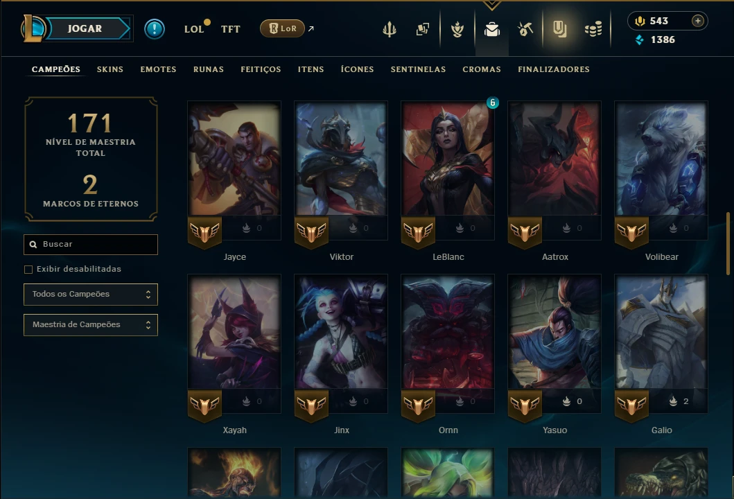 Unranked com 70 Champs e 38 Skins ( MID / ADC )