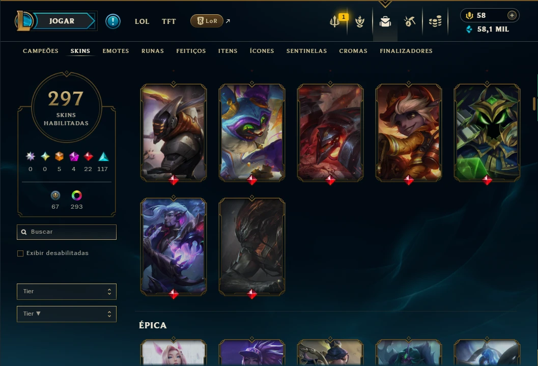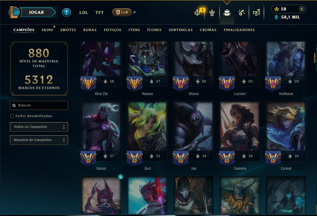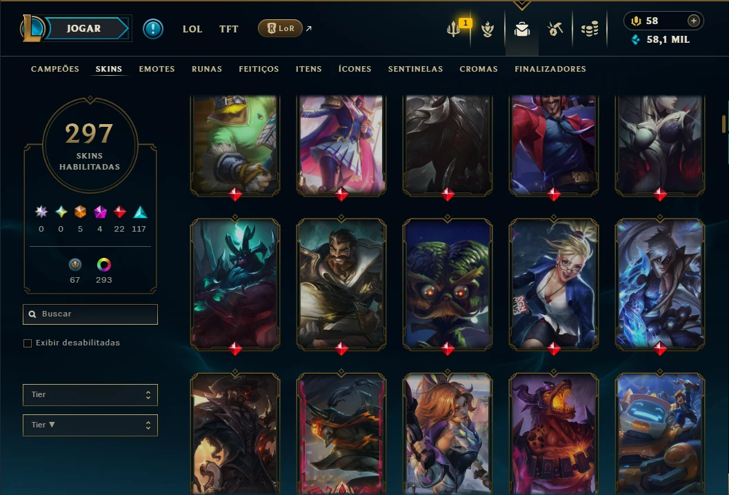 Unranked com TODOS os Champs e 297 Skins +4 Prestigios