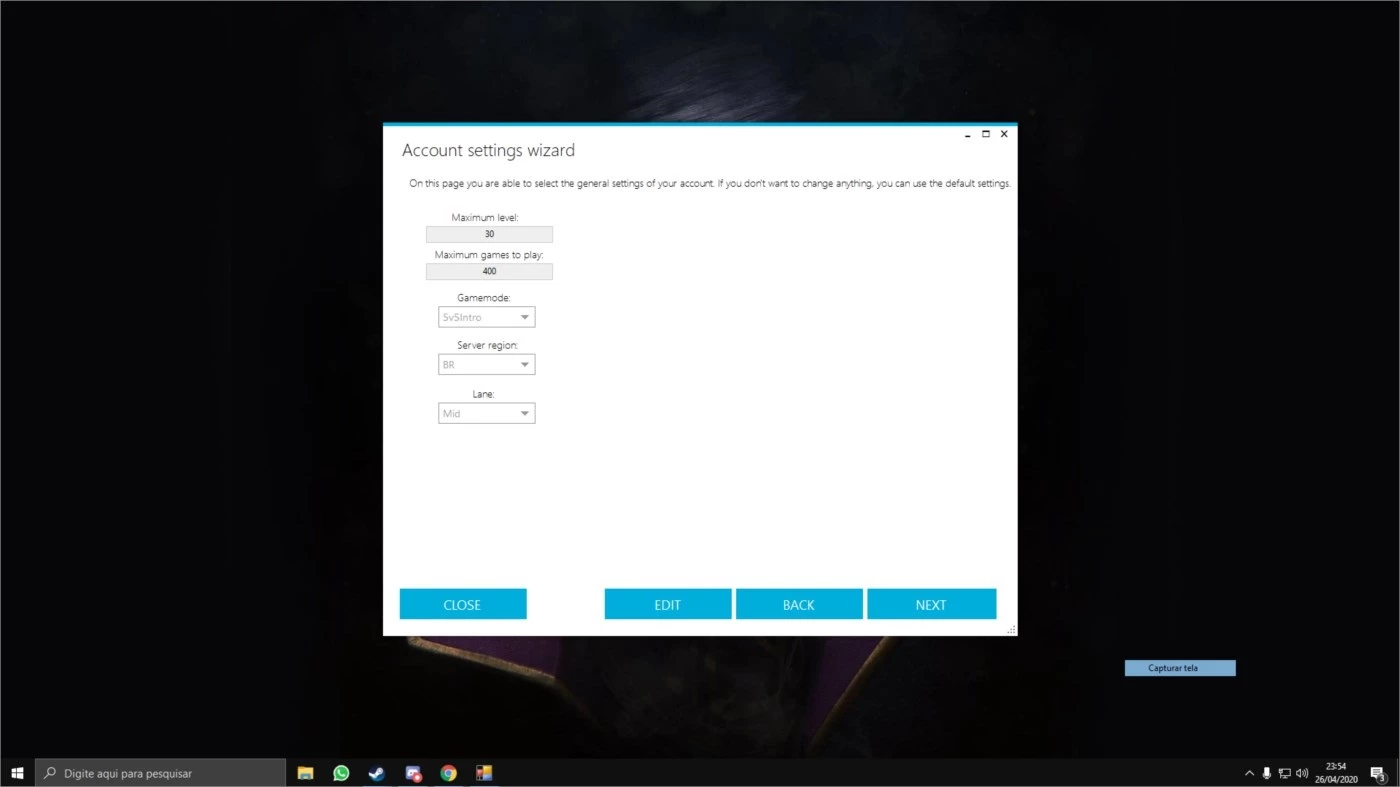 - É um pixel bot, ou seja, foi feito para não tomar ban, não é um bot pra ficar com frag/farm/nível alto (não influencia no tempo das partidas).