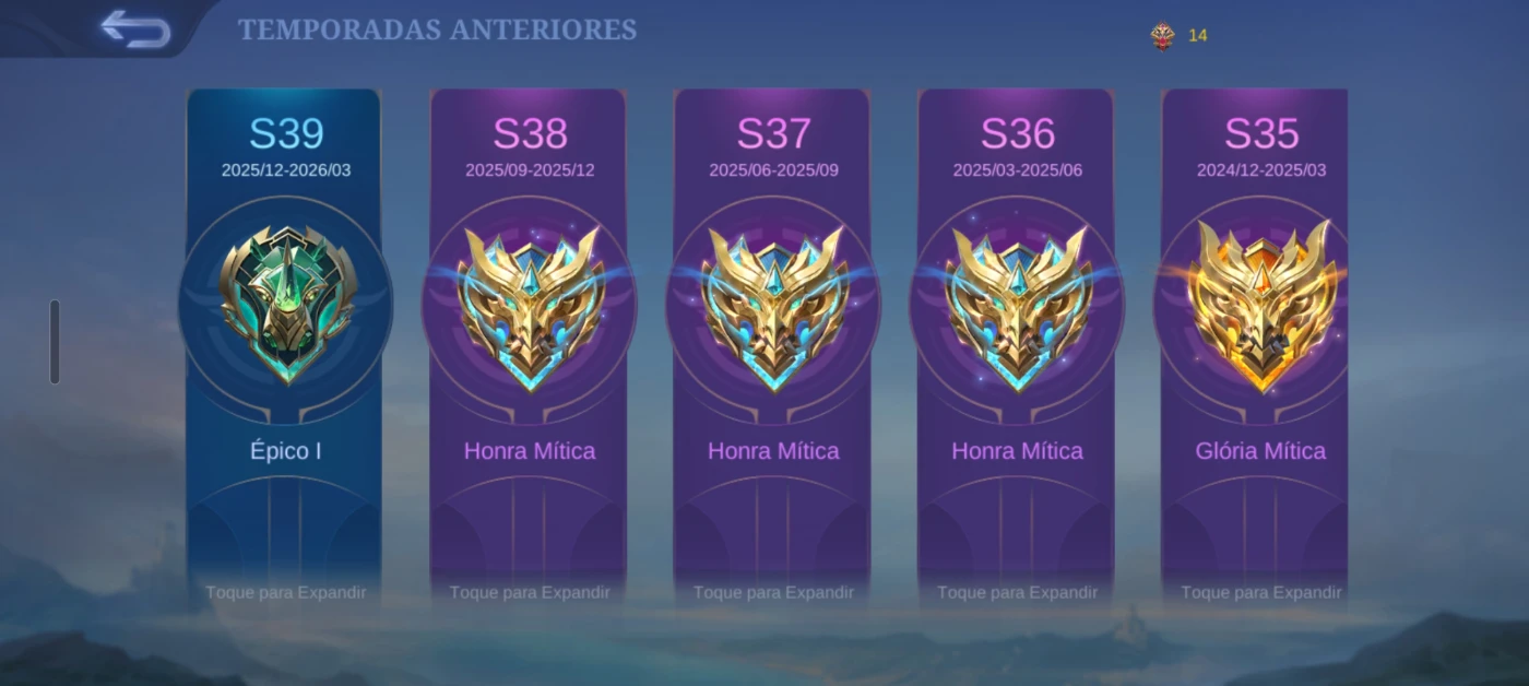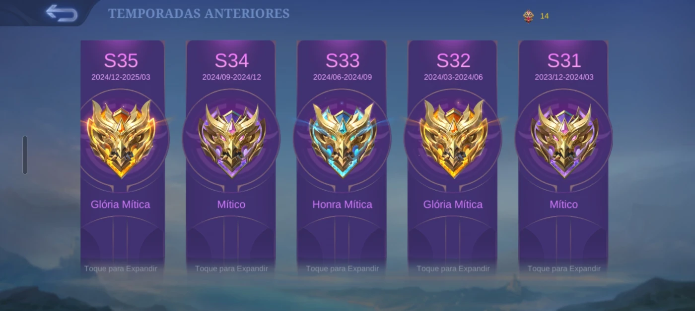 - Rank Atual/Máximo: Histórico consistente de Mítico e Glória Mítica nas últimas temporadas (S31 a S35)