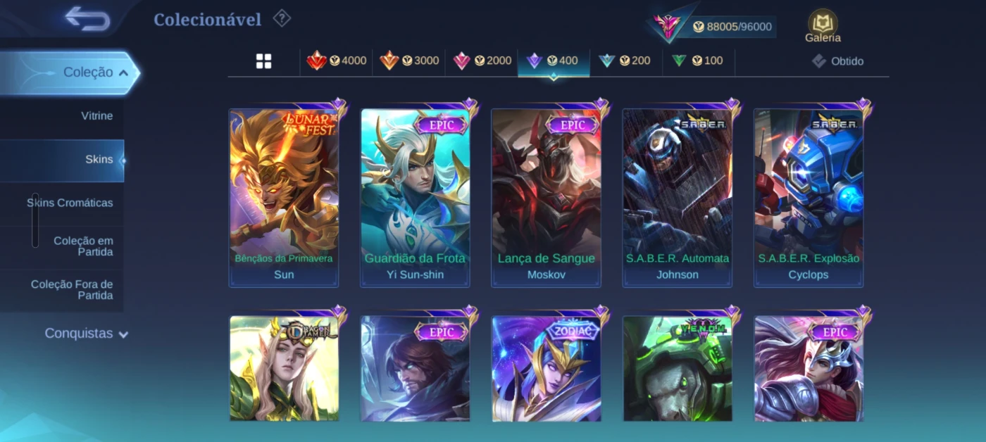 - Nível de Colecionador: Colecionador Prestigiado V (88.005 pontos)