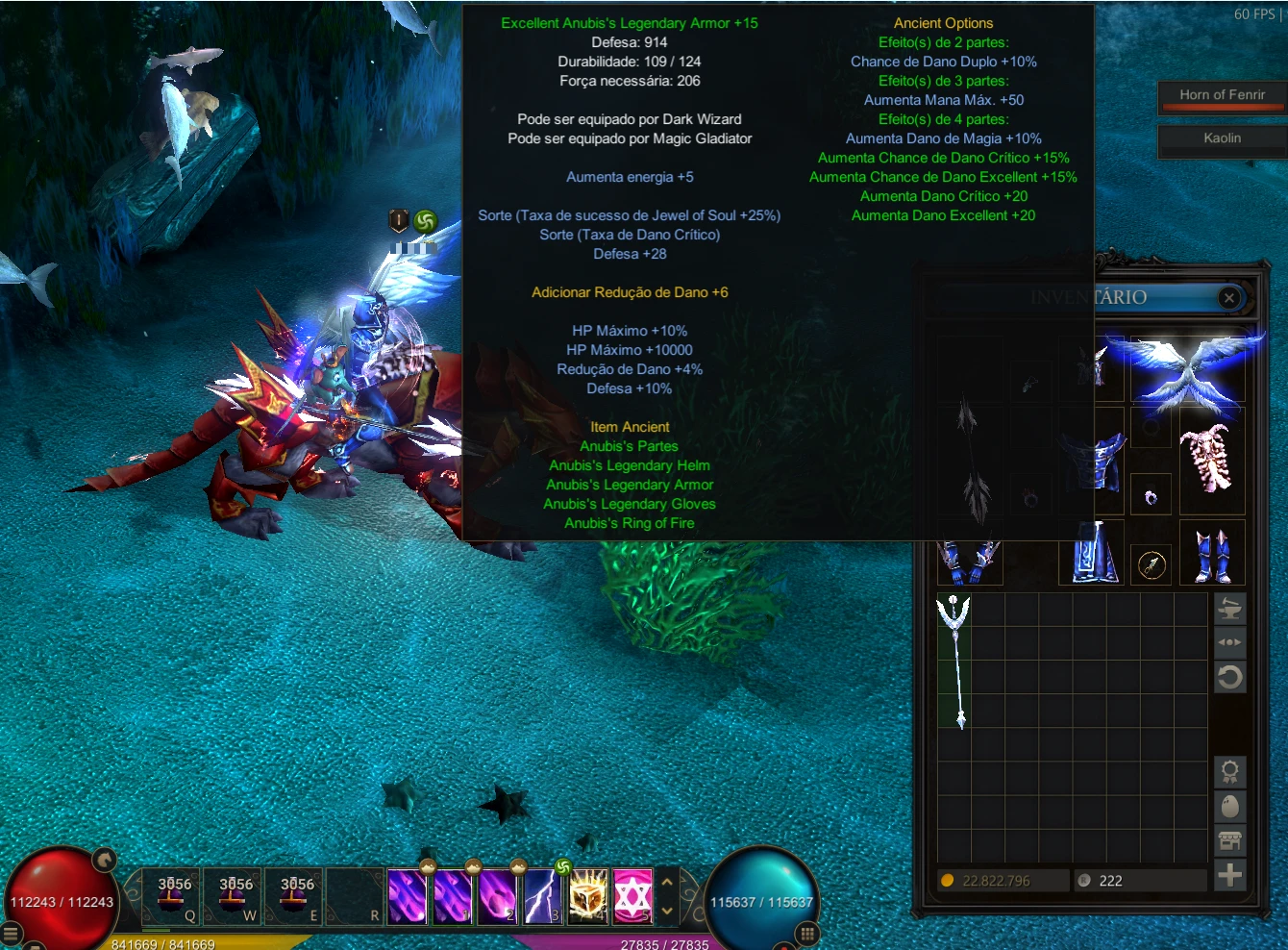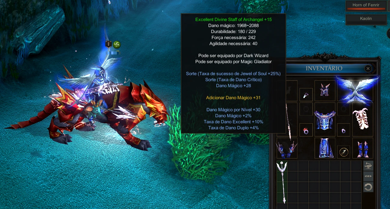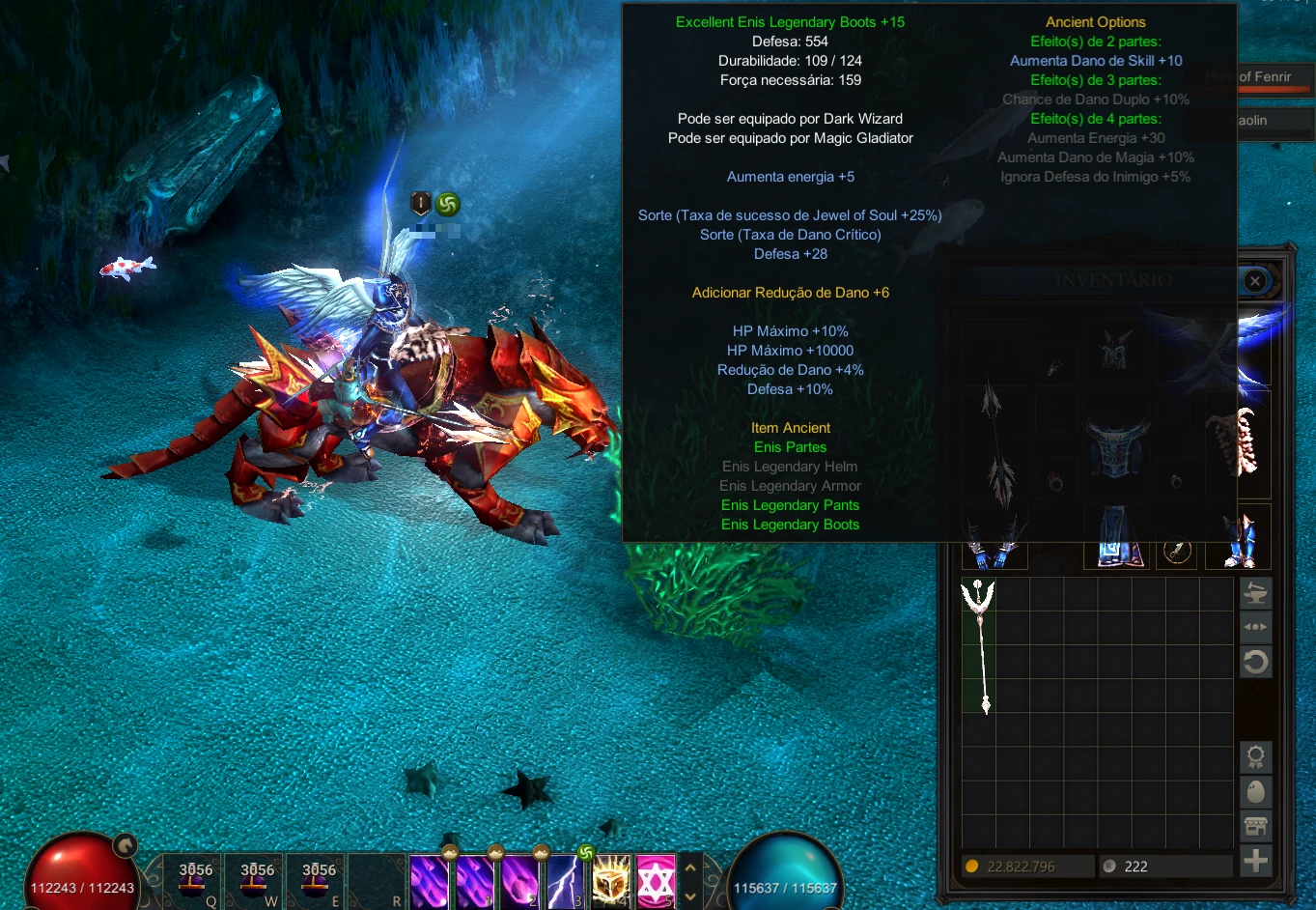 Diversos itens no baú: Boxes, Joias, Penas, Potions, Itens Excellent, Itens Ancient, Zen etc.