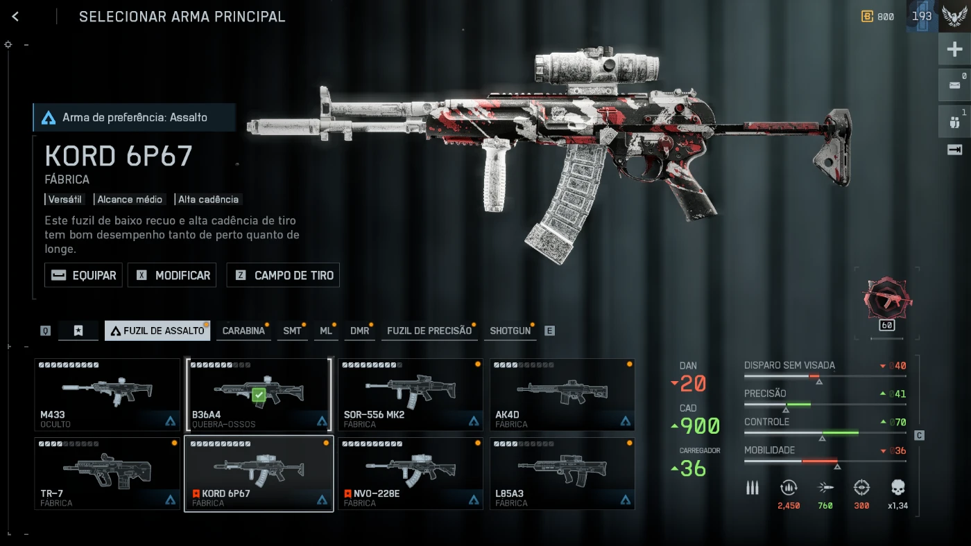 • Armas LV 50+ > KORD 6P67 (LV:60) - NVO- 228E - (LV:53) - M4A1 (LV:50) - SL9 (LV: 51) - KV9 (LV:55)