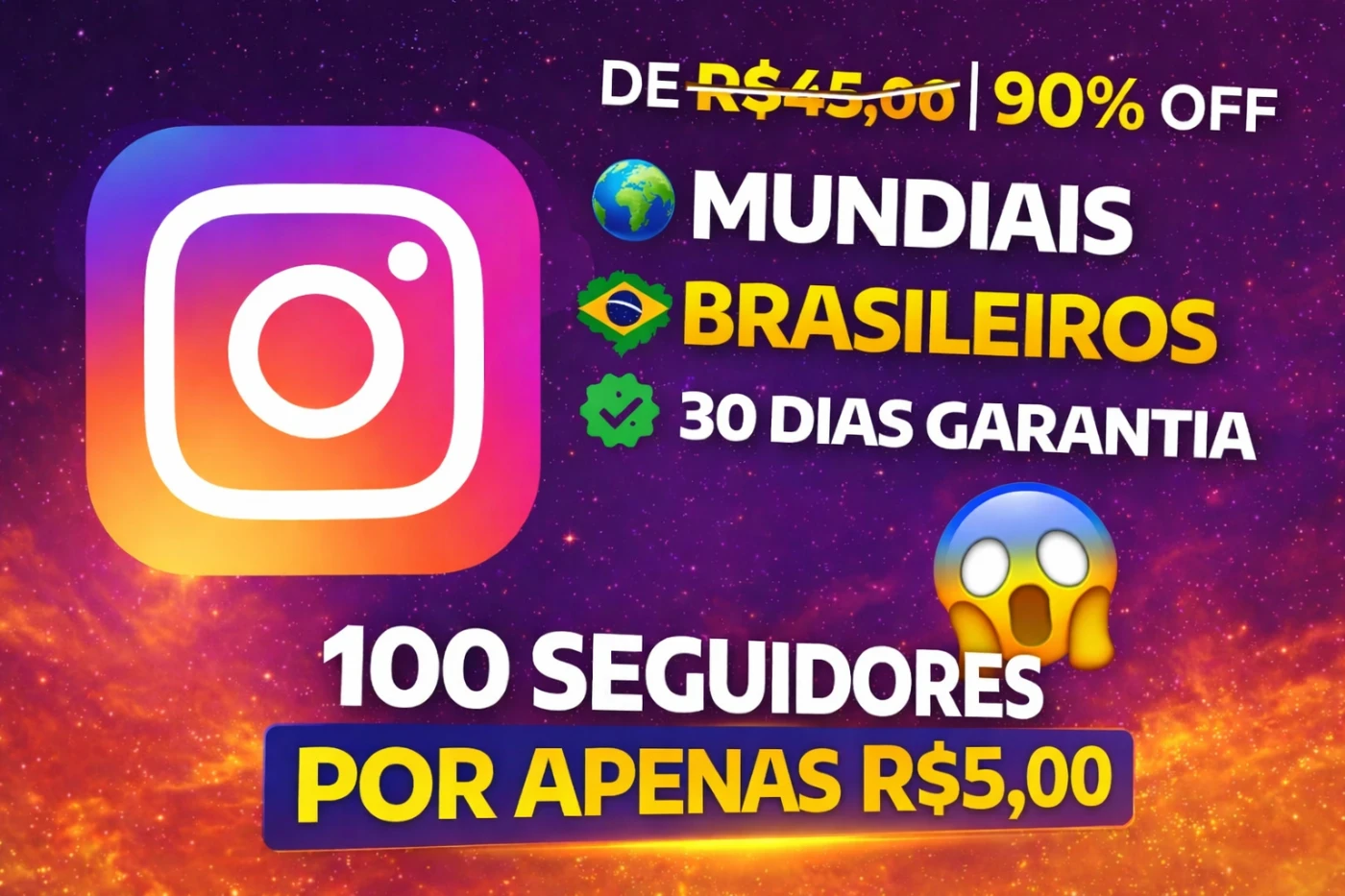 100 Seguidores Instagram por apenas R$ 3,00