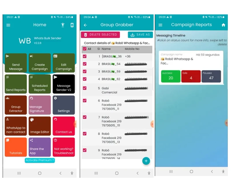 - Envia mensagem em massa ilimitado para grupos, contatos da sua agenda, contatos extraídos de grupos, listas Excel com contatos, listas CSV com contatos