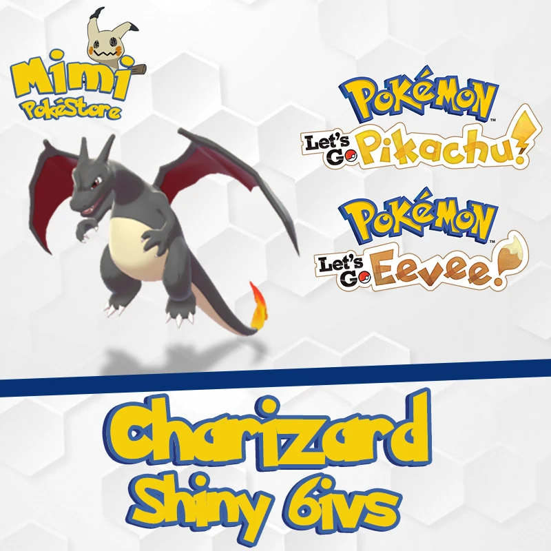Charizard ou Charmander Shiny Pokémon Let's GO Pikachu Eevee