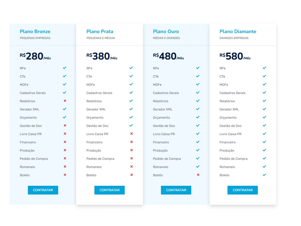 - Emissão de NFe, CTe e MDFe de forma rápida e segura.