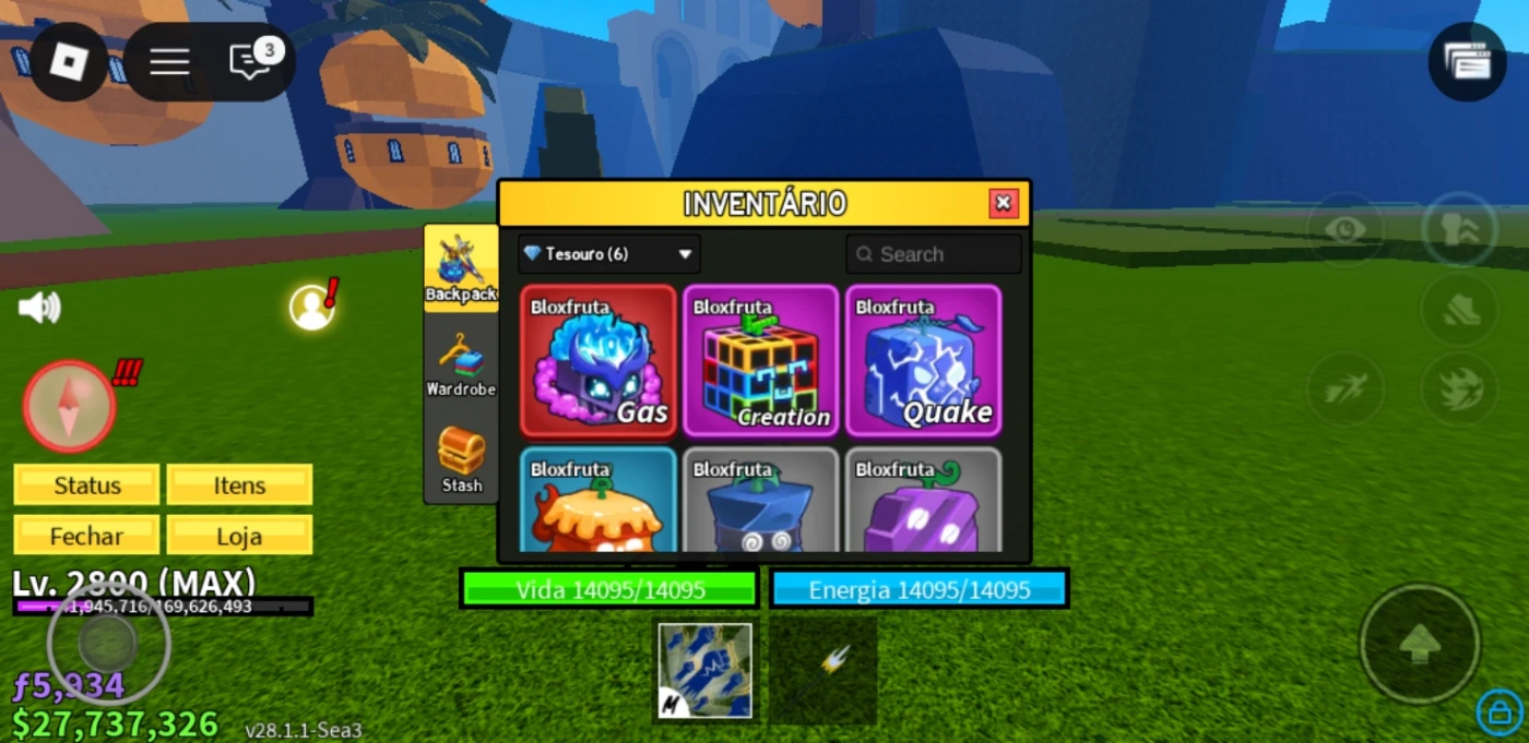 Conta de blox fruits com fruta aleatória no inventário