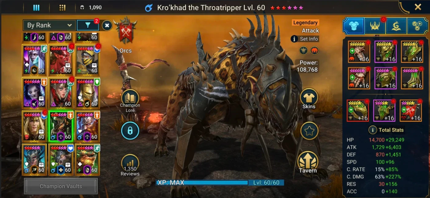 Conta incrível de endgame com mais de 20 campeões +4 fortalecidos, 6 Míticos e mais de 60 campeões do Vazio. Inclui Wixwell/Titus, além de Packmaster e Kro'Khad.