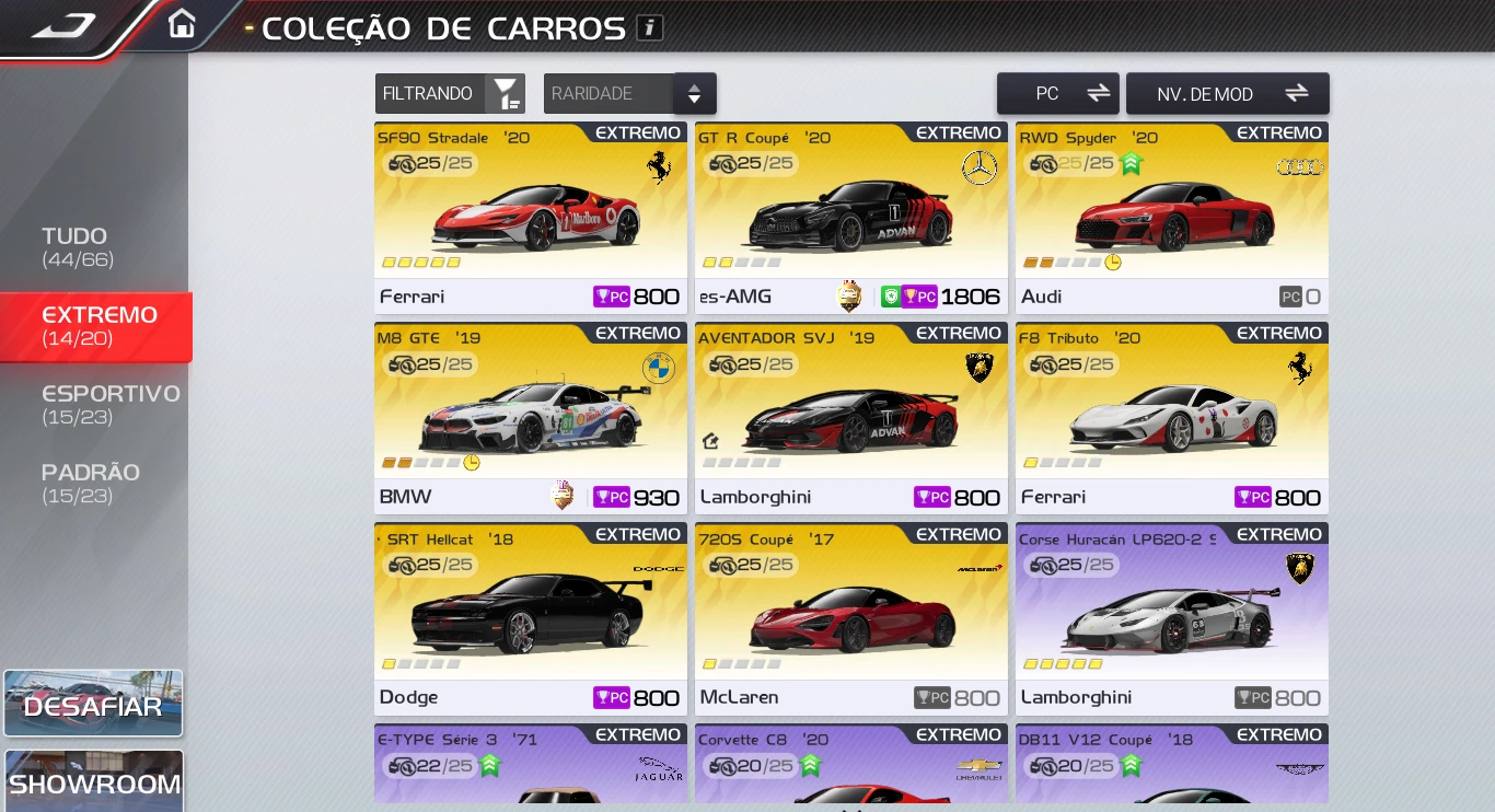 CONTA RACING MASTER VIP 6 COM 20 CARROS LENDÁRIOS