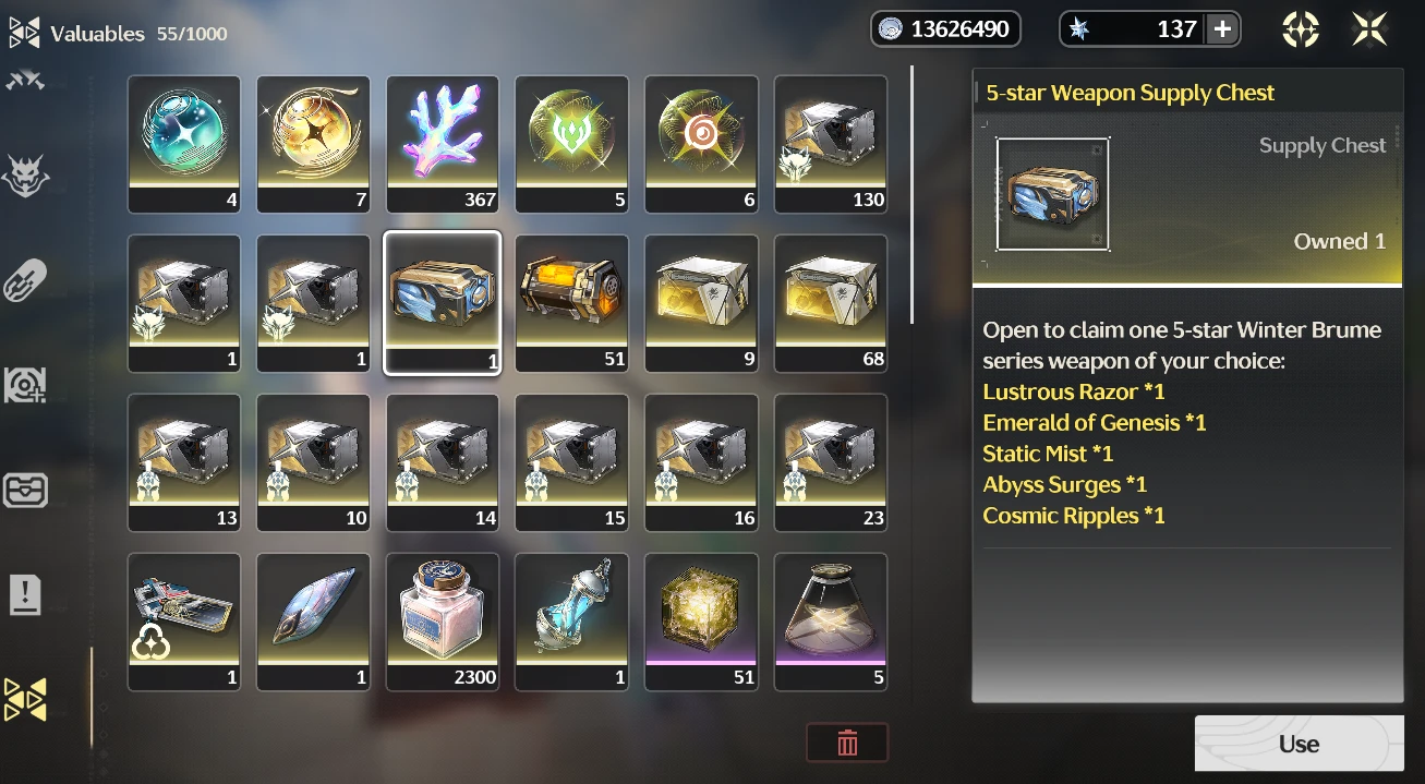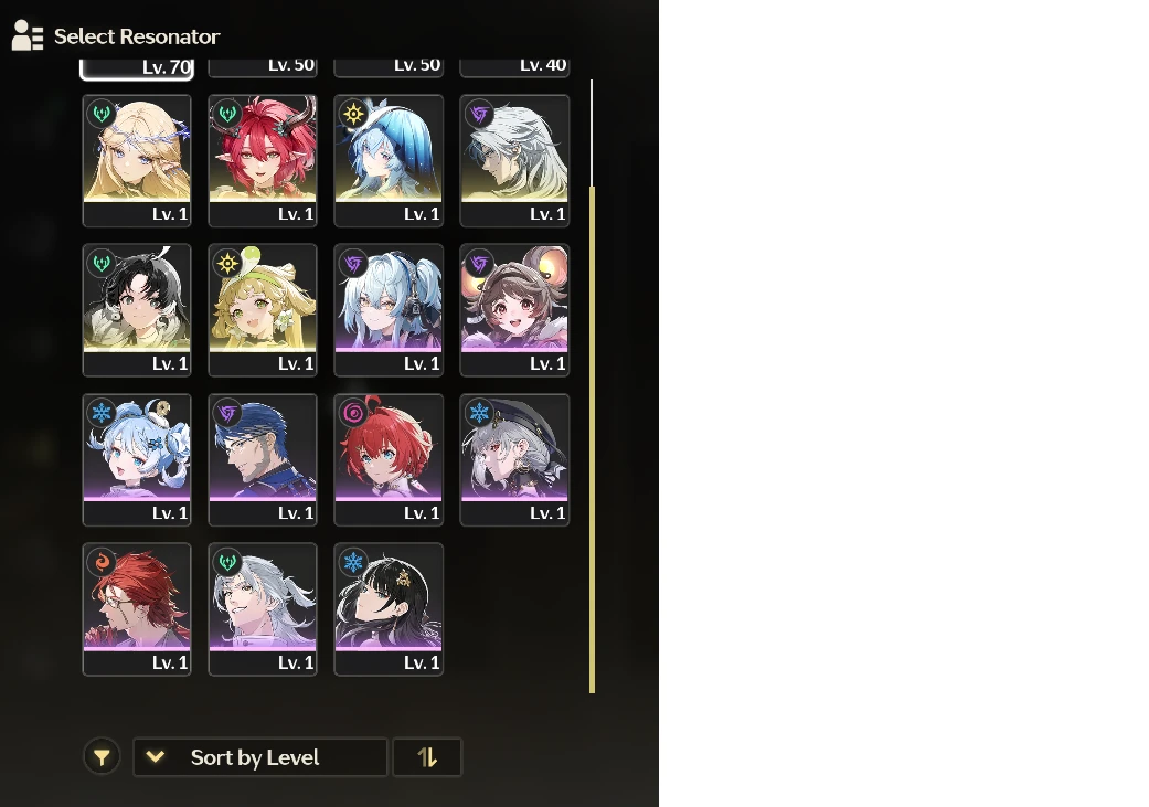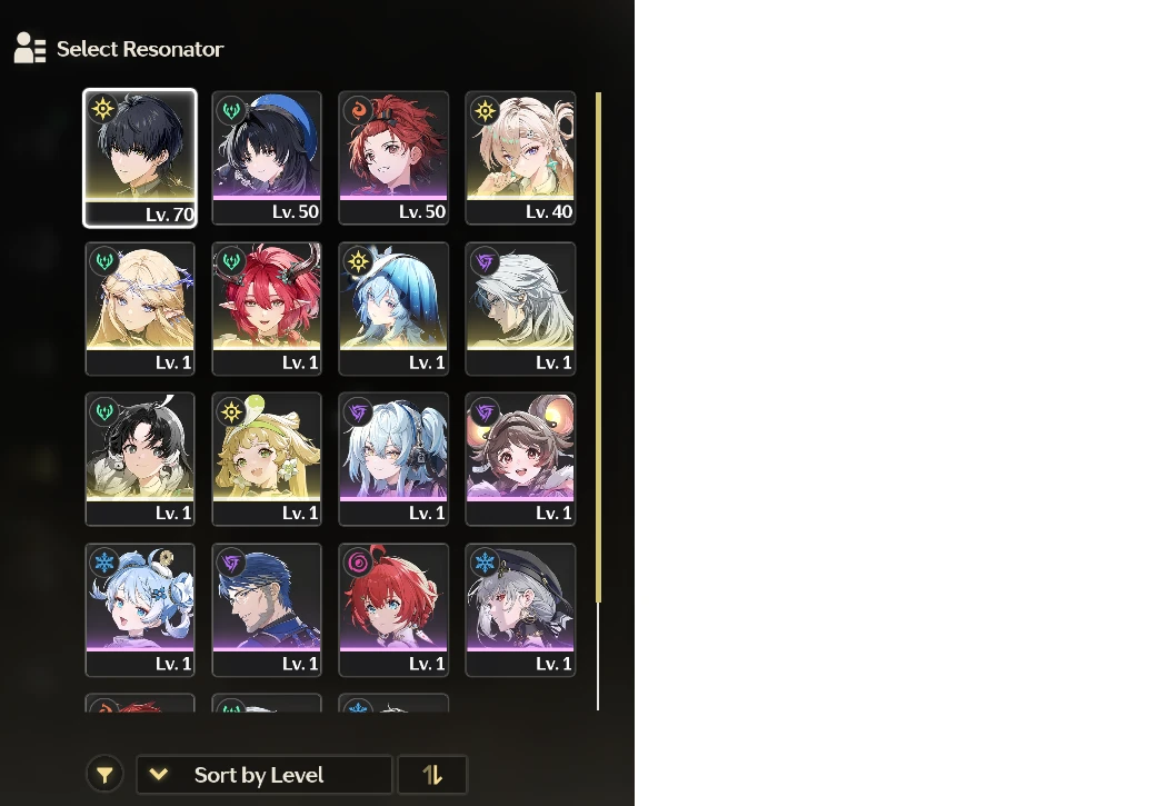 A conta possui Linay, Shorekeeper, Verina, YangYang S5, Chixia S2, Carthetyia, Ciaccona, Calcharo, Jianxin, Buling S3, Lumi, Youhu S4, Yuanwu S3, Danjin, Sanhua S3, Mortefi S4, Aalto, Baizhi S6. Arma Mochileiro T5 para abrir, Tem a Emerald of Genesis e Bloodpact's Pledge.