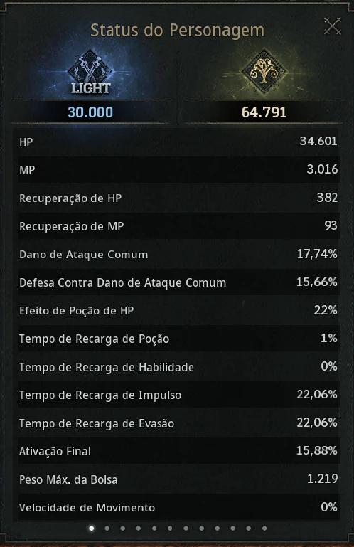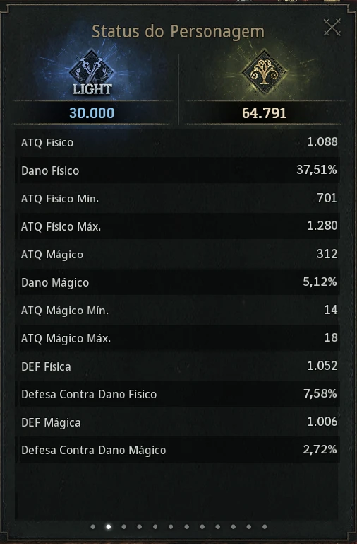 Todos os equips azuis e +7 sendo arma secundária +8 e bracelete + 9