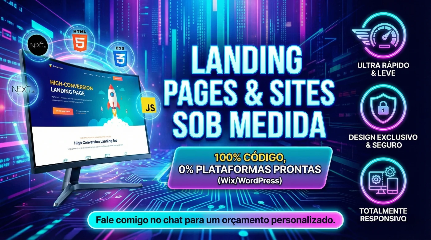 Zero Templates Genéricos: Seu site é desenvolvido do zero, linha por linha de código. Nada de "arrastar e soltar" do Wix ou WordPress.
