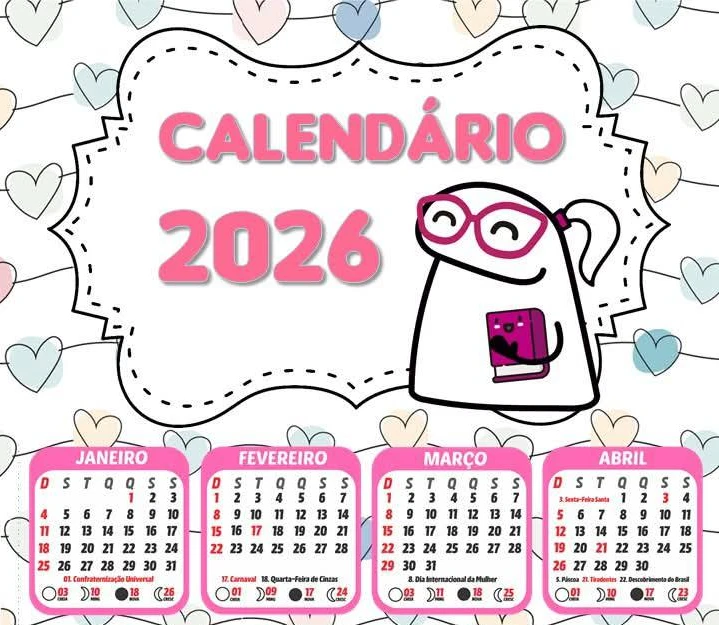 ( FLORK na Cor Rosa ) Calendario 2026 - PNG