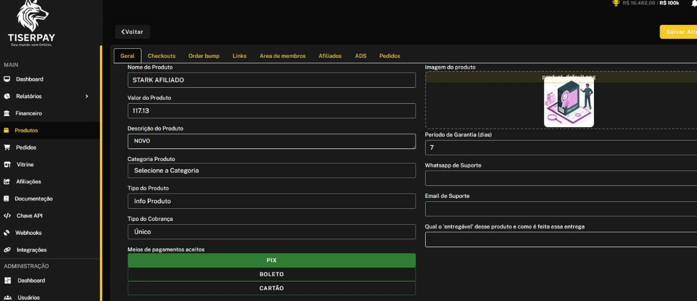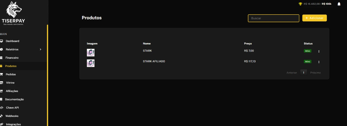 - Plataforma completa para afiliados se cadastrarem e venderem produtos.